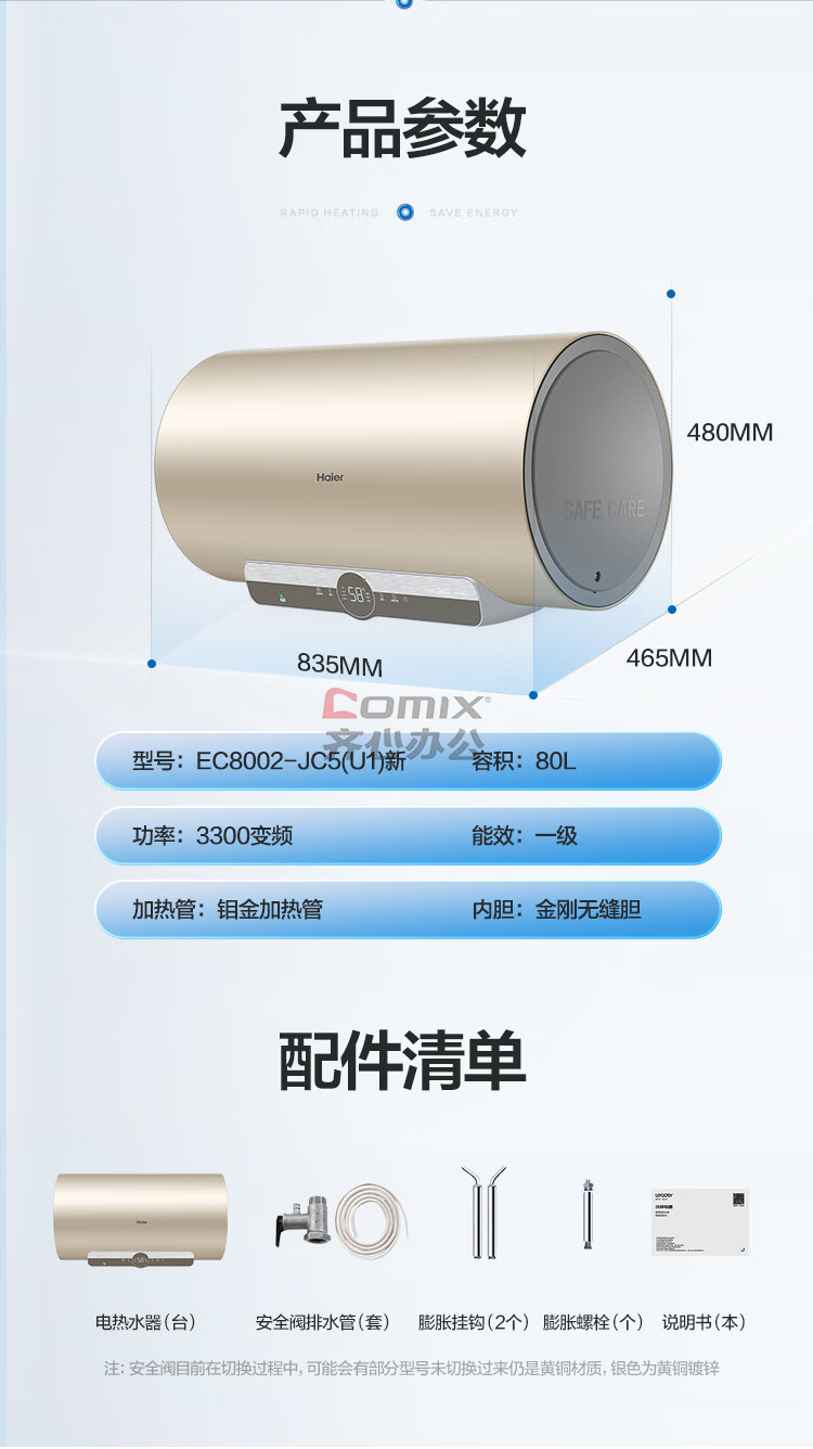 商品名称:海尔 EC8002-JC5(U1)新 80升 电热水器 智能远程操控 单位:台