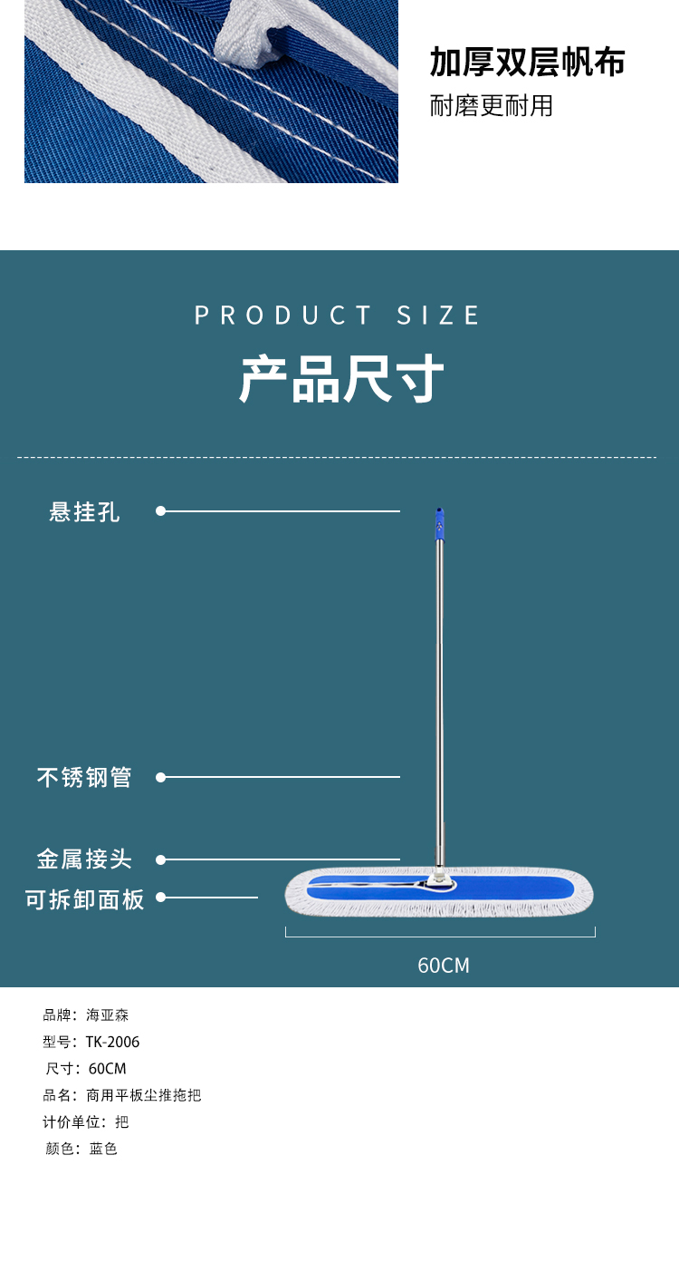 商品名称:海亚森 TK-2006 60CM 商用平板尘推拖把 (计价单位:把) 蓝色