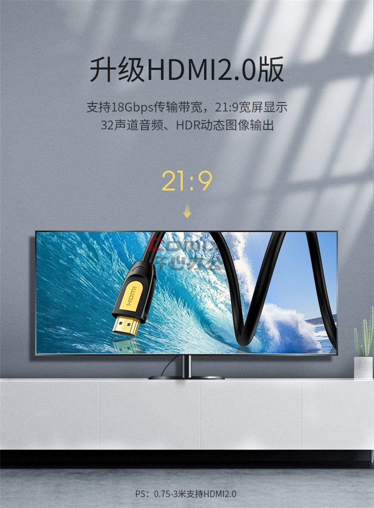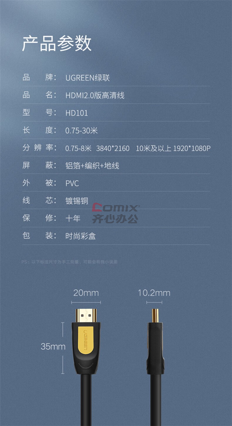 商品名称:绿联 40464 显示器连接线 (HDMI高清 支持4K/30Hz 30AWG OD7.3mm) 绿黑(单位:根)