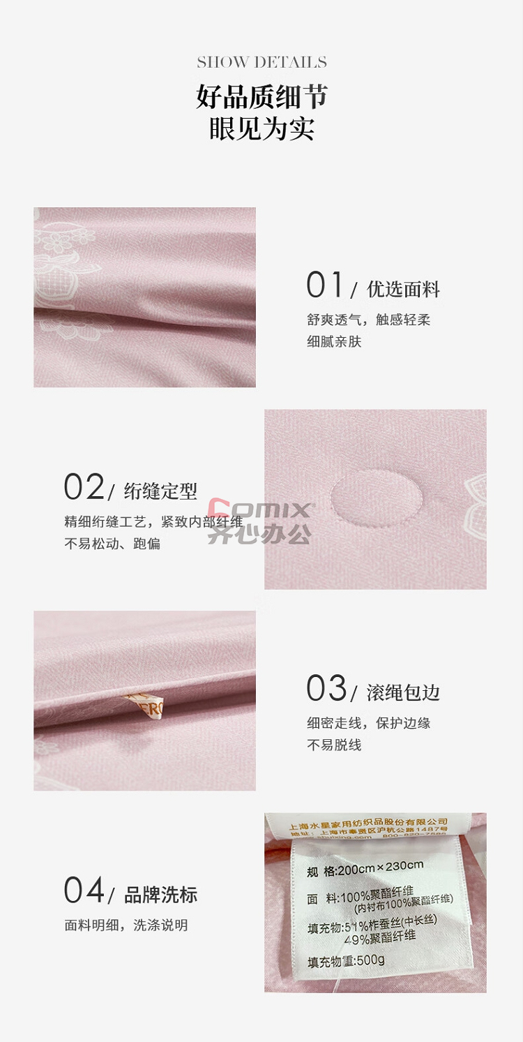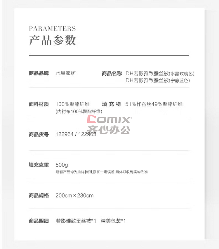 商品名称:水星家纺 DH若影雅致(宁静蓝) 床200cm×230cm 蚕丝被 单位:张