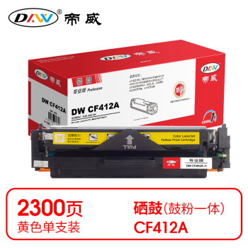 - 商品名称:帝威 DW CF412A 硒鼓(带芯片) 专业版 适用惠普HPColorLaserJetProM452/M377/M477 打印量2300页 黄色 单位:支