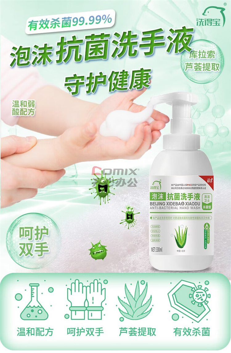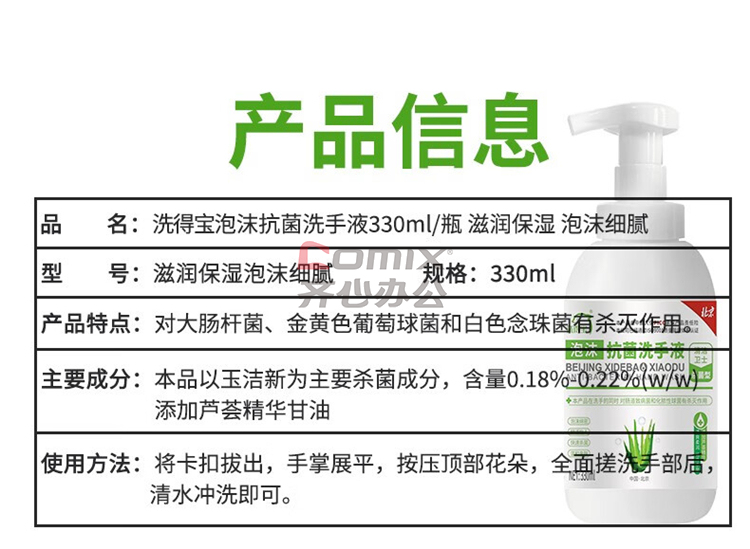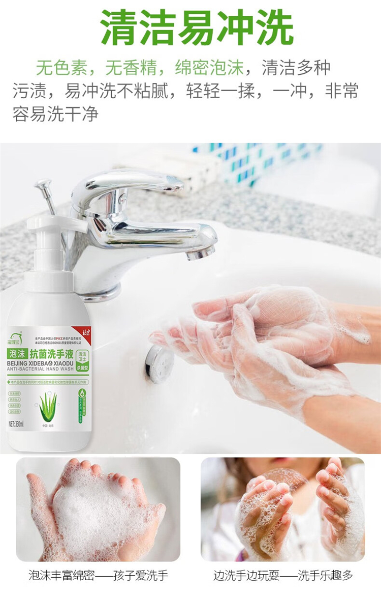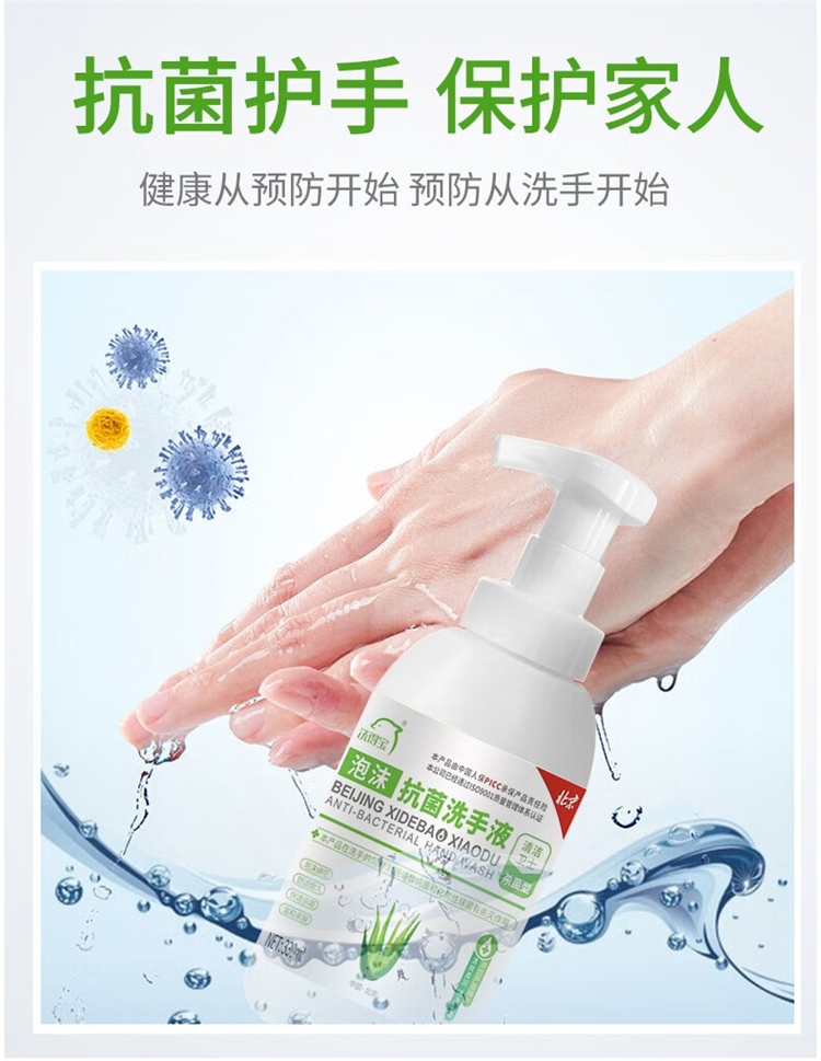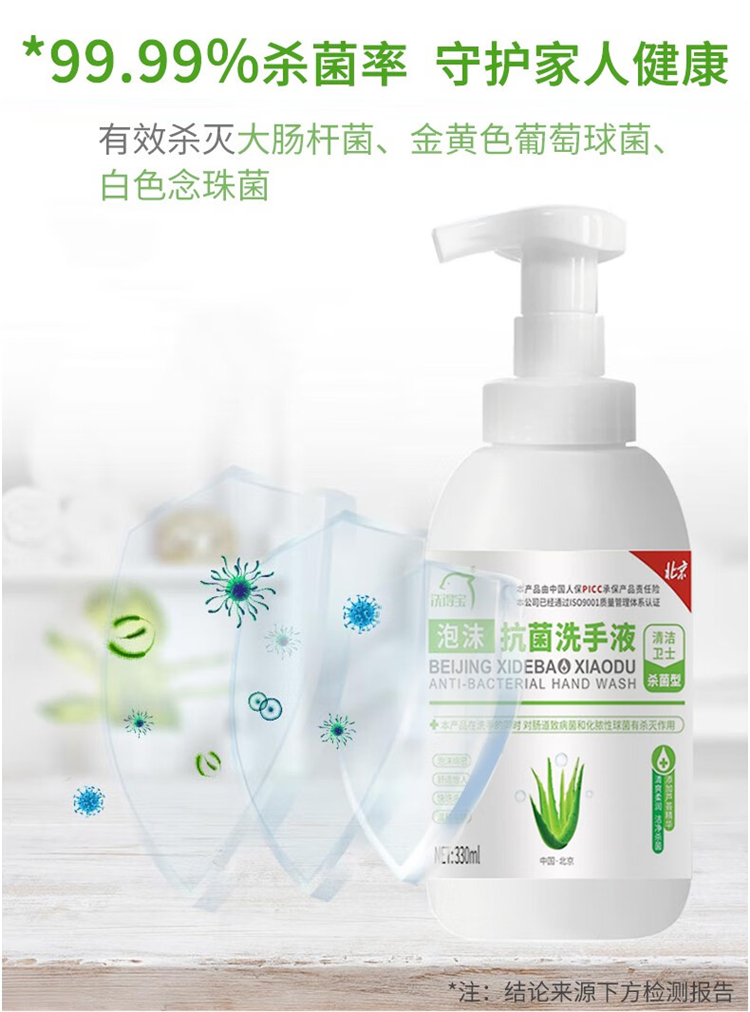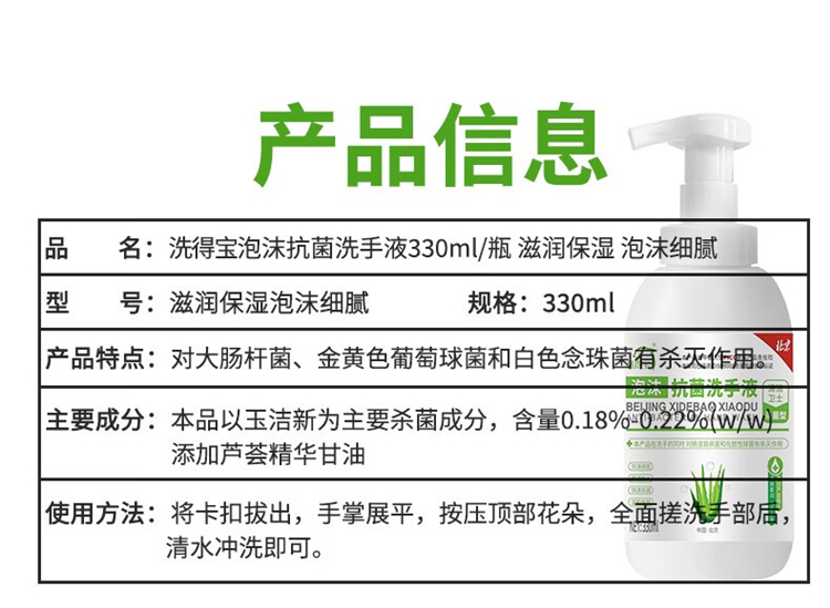 商品名称:洗得宝 330ml/瓶 抗菌泡沫洗手液 滋润保湿泡沫细腻 单位:瓶