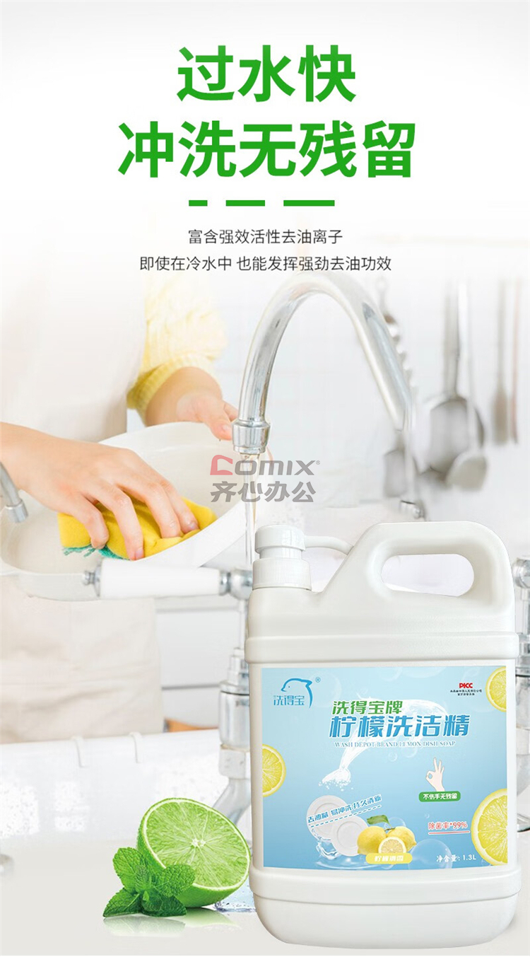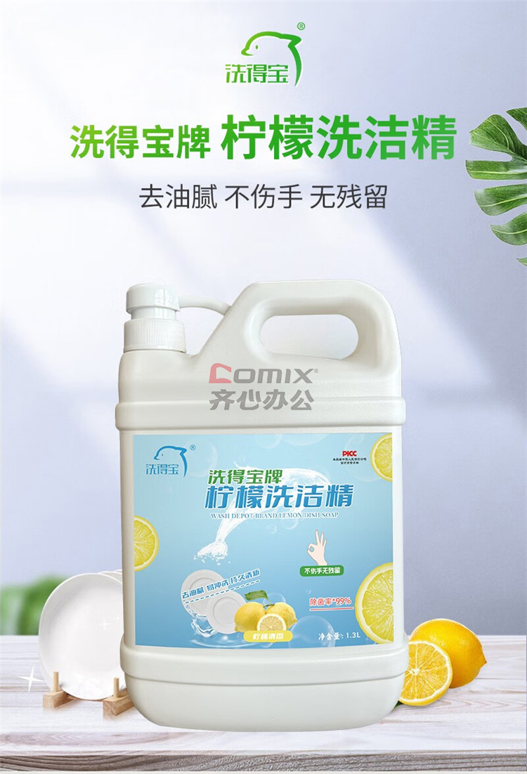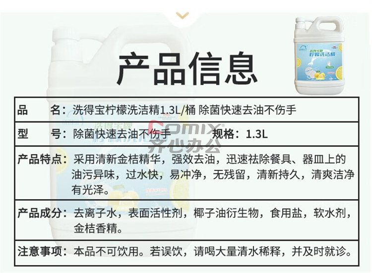 商品名称:洗得宝 1.3L/桶 柠檬洗洁精 除菌快速去油不伤手 单位:桶