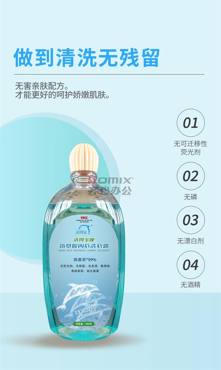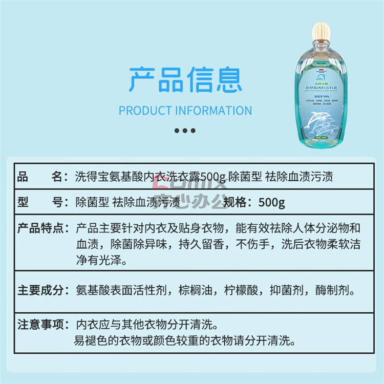 商品名称:洗得宝 500g/瓶 氨基酸内衣洗衣露 除菌型祛除血渍污渍洗衣液 单位:瓶