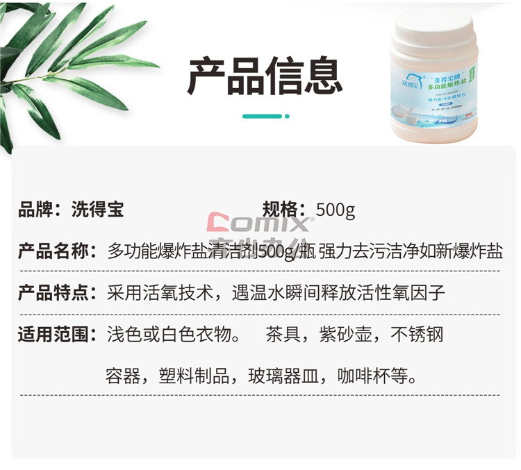 商品名称:洗得宝 500g/瓶 多功能爆炸盐清洁剂 强力去污洁净如新爆炸盐 单位:瓶