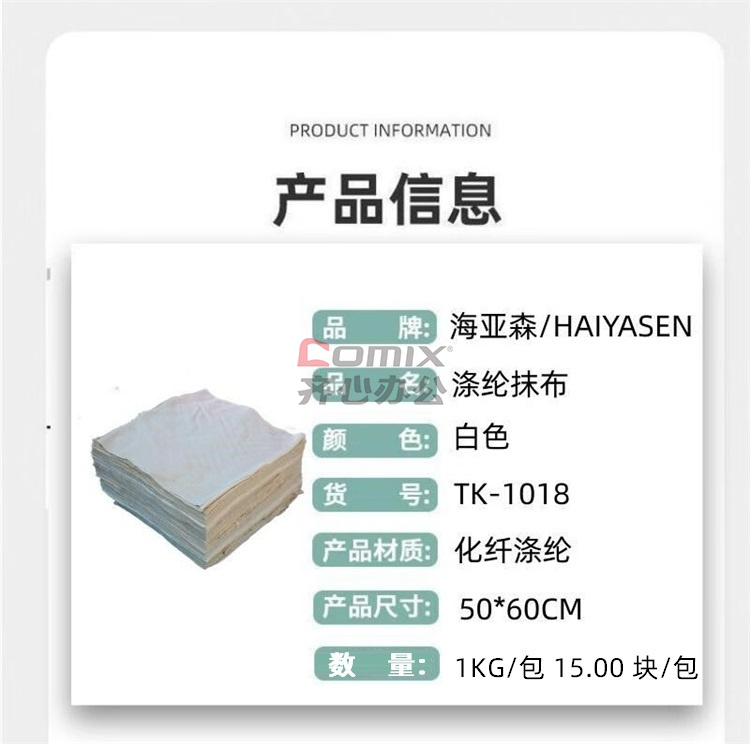 商品名称:海亚森 TK-1018 涤纶抹布50*60cm(白色)1kg/包 单位:包