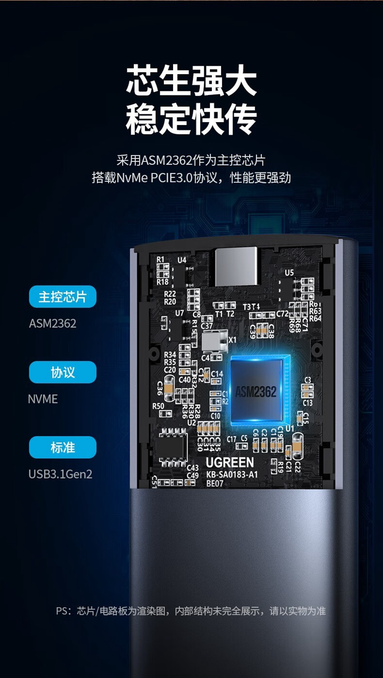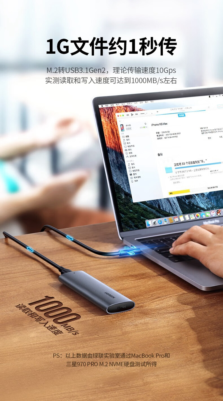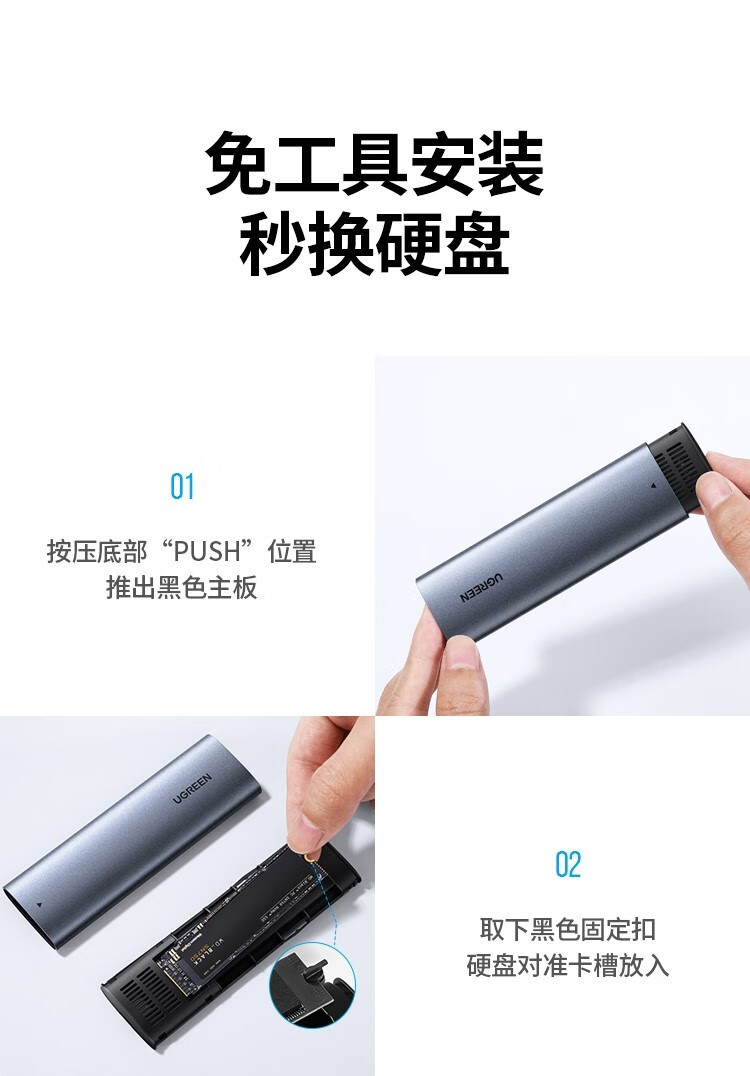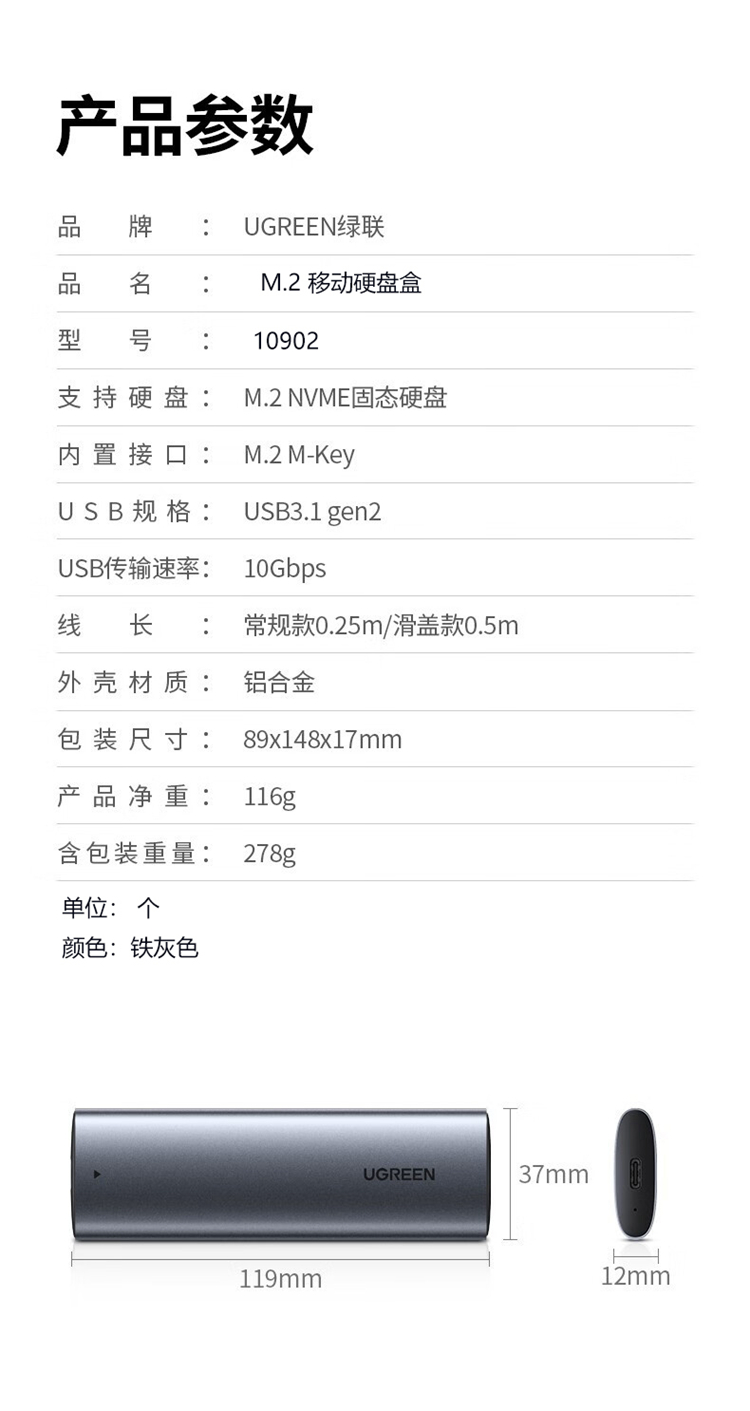 商品名称:绿联 10902 M.2 移动硬盘盒 1 个 铁灰色 单位:个
