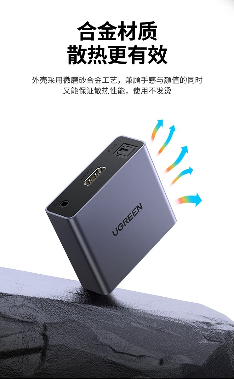 绿联 60649 适用视频投影笔记本计算机机顶盒 HDMI音频分离器 黑 单位:个