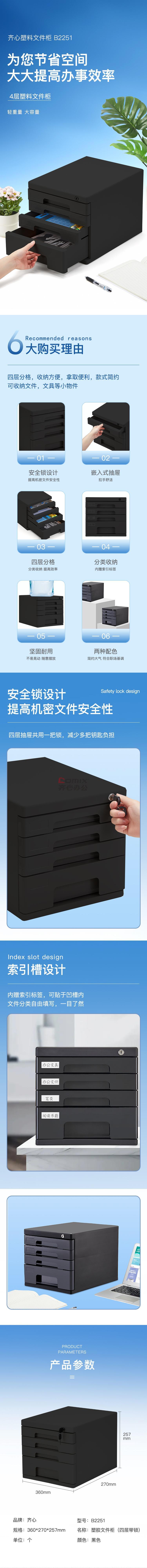 商品名称:齐心 B2251 塑胶文件柜 四层 带锁 黑色 单位:个