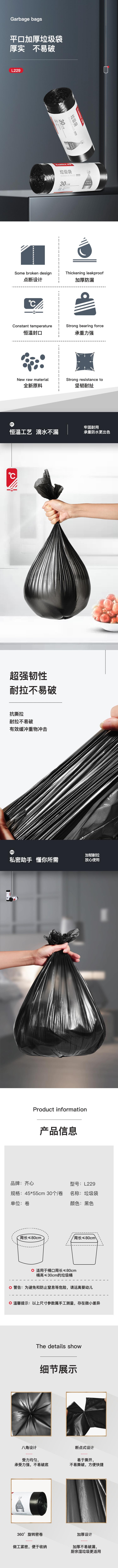 商品名称:齐心 L229 垃圾袋 45*55cm 黑色 30个/卷 单位:卷