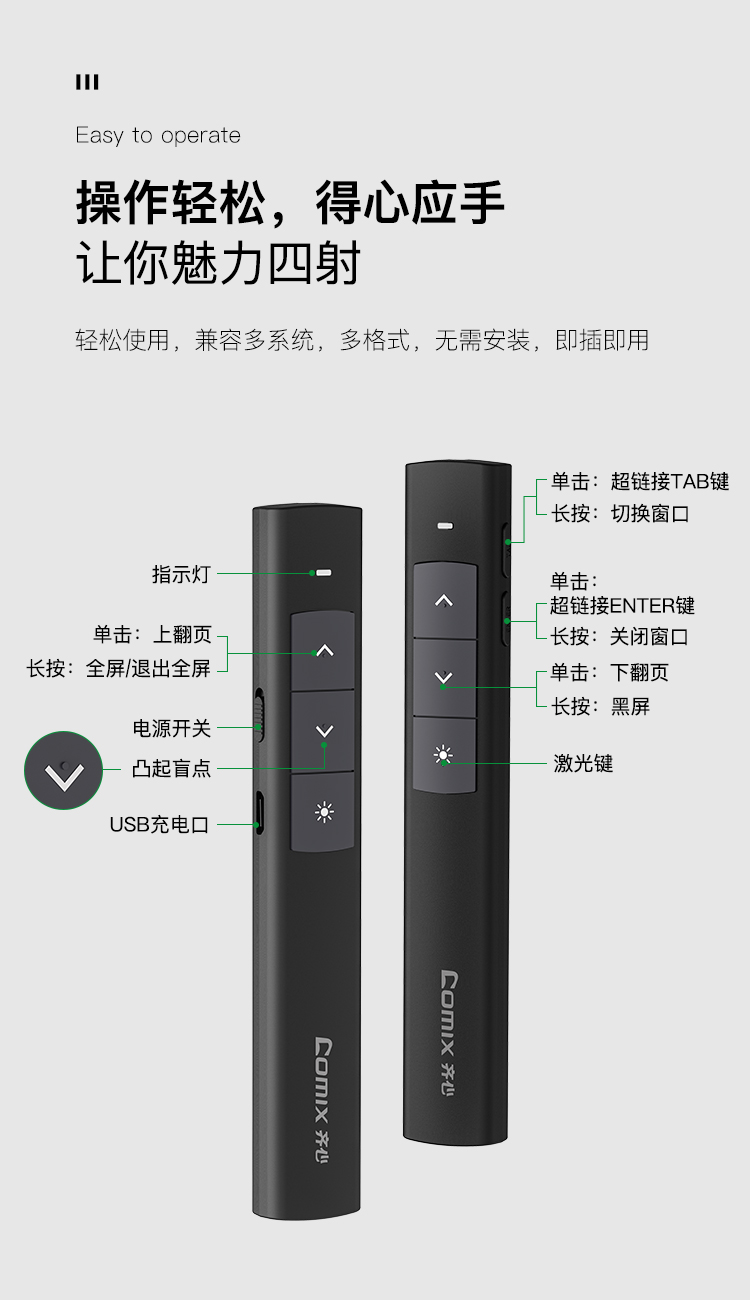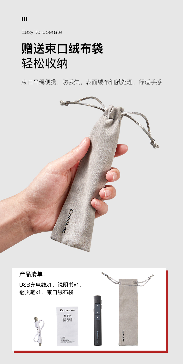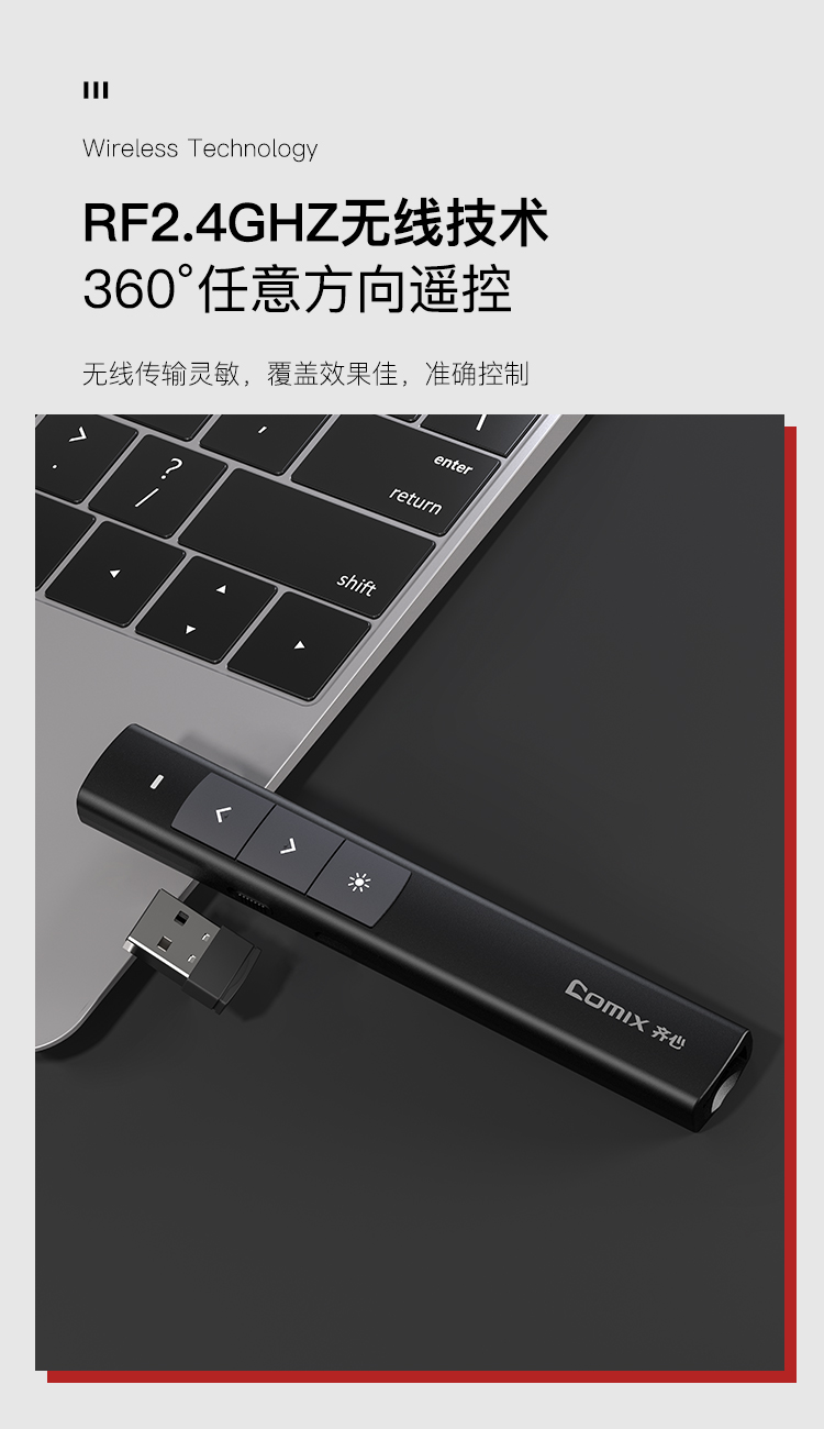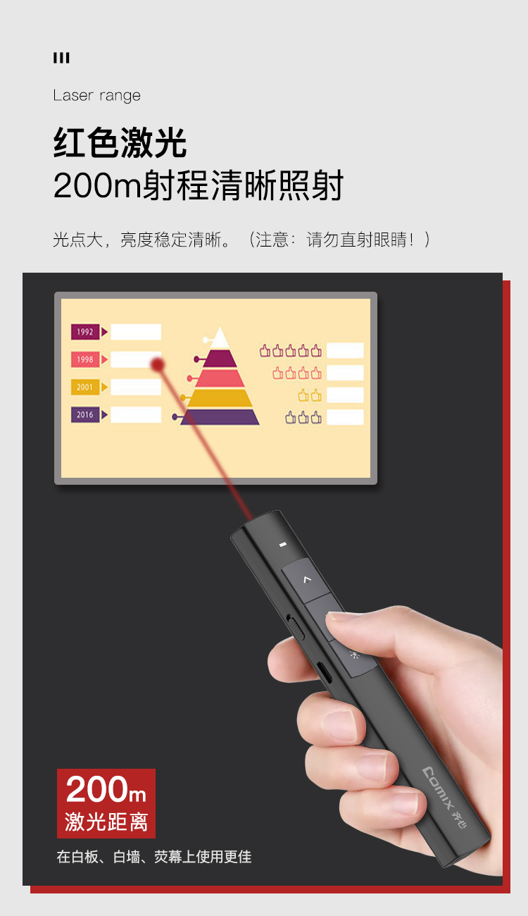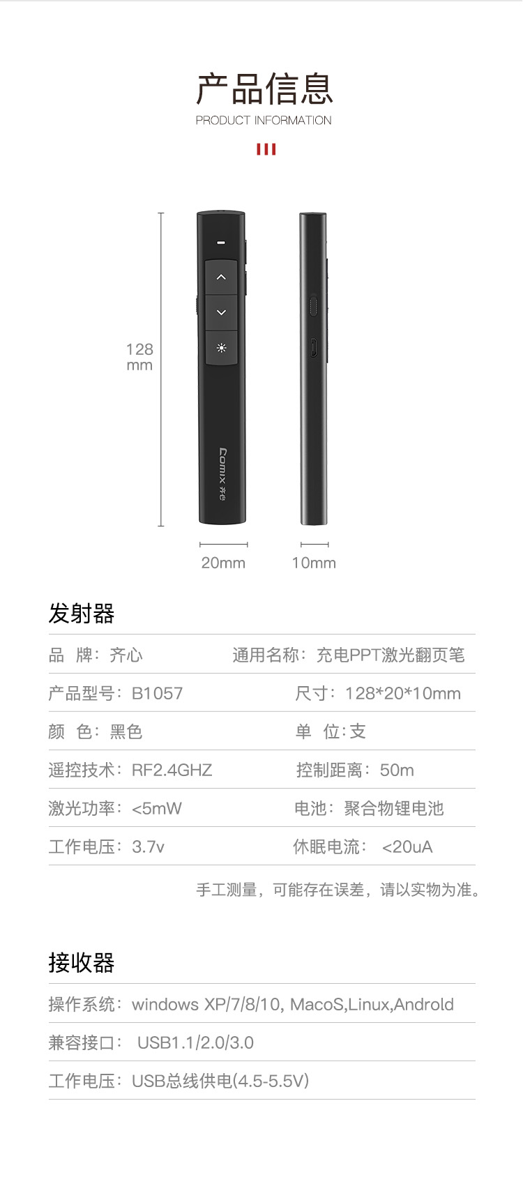 商品名称:齐心 B1057 红光 充电PPT激光翻页笔 黑色 单位:支