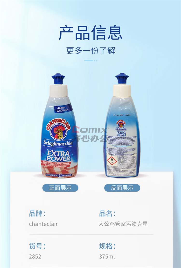 商品名称:大公鸡管家 衣领净 洗衣液 重油污渍克星清洁剂 意大利进口375ml 单位:瓶