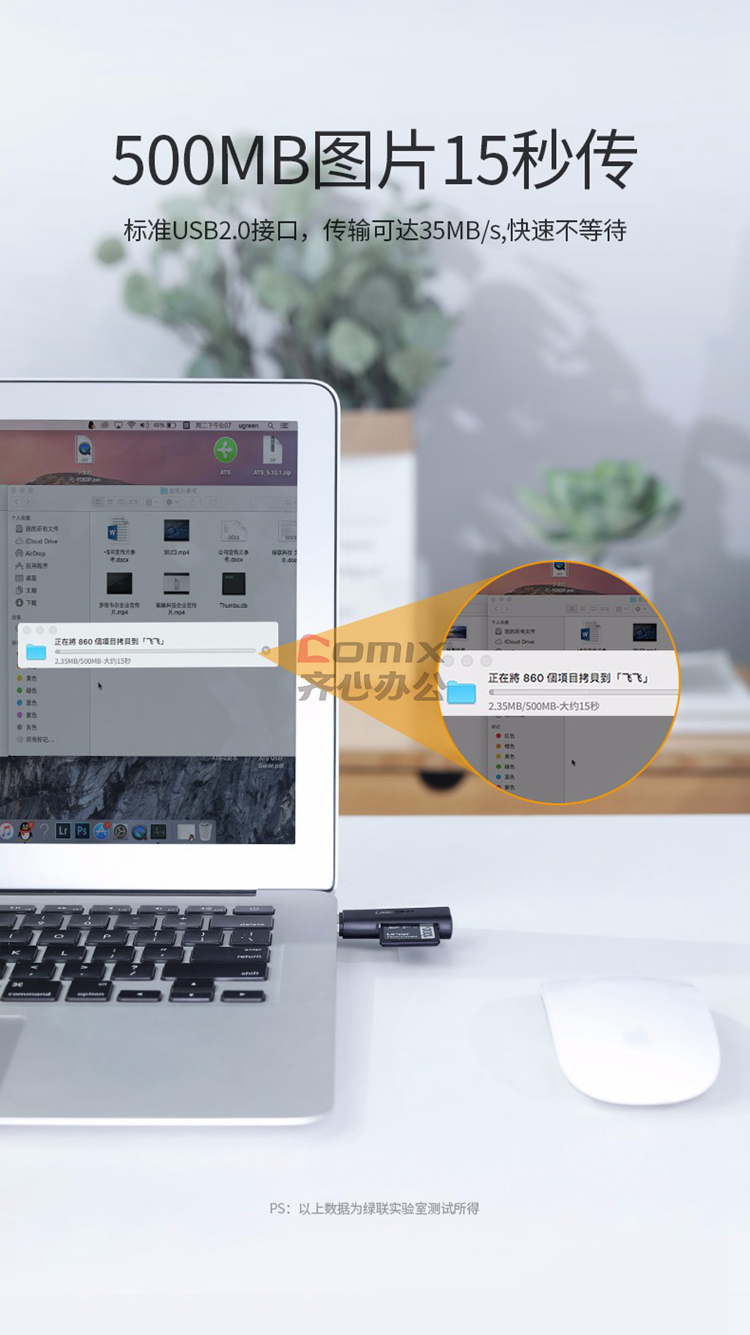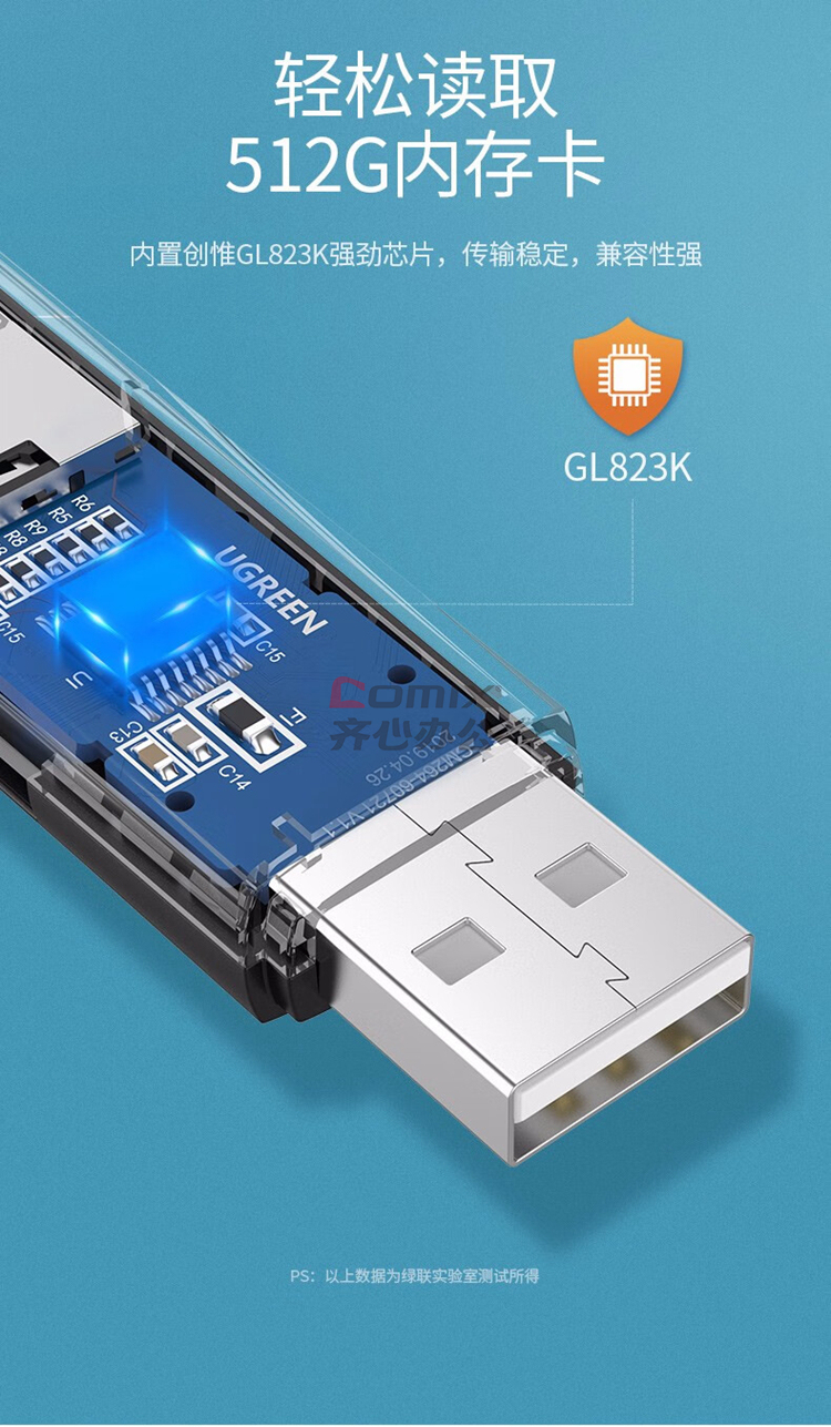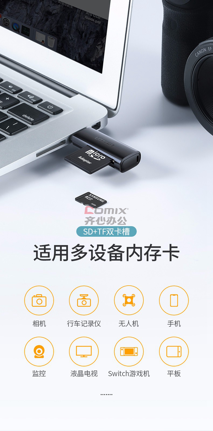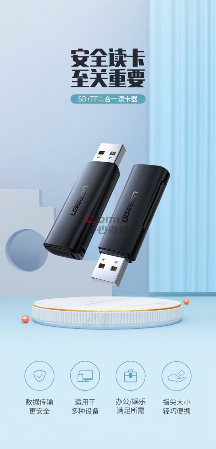 商品名称:绿联 60721 USB2.0转SD+TF读卡器 双卡单读 (单位:个)