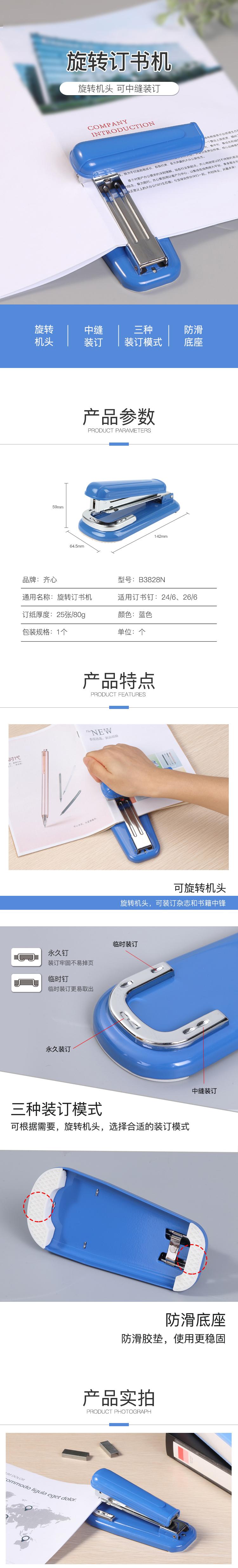 齐心 B3828N 旋转订书机 12# 蓝色 单位:个