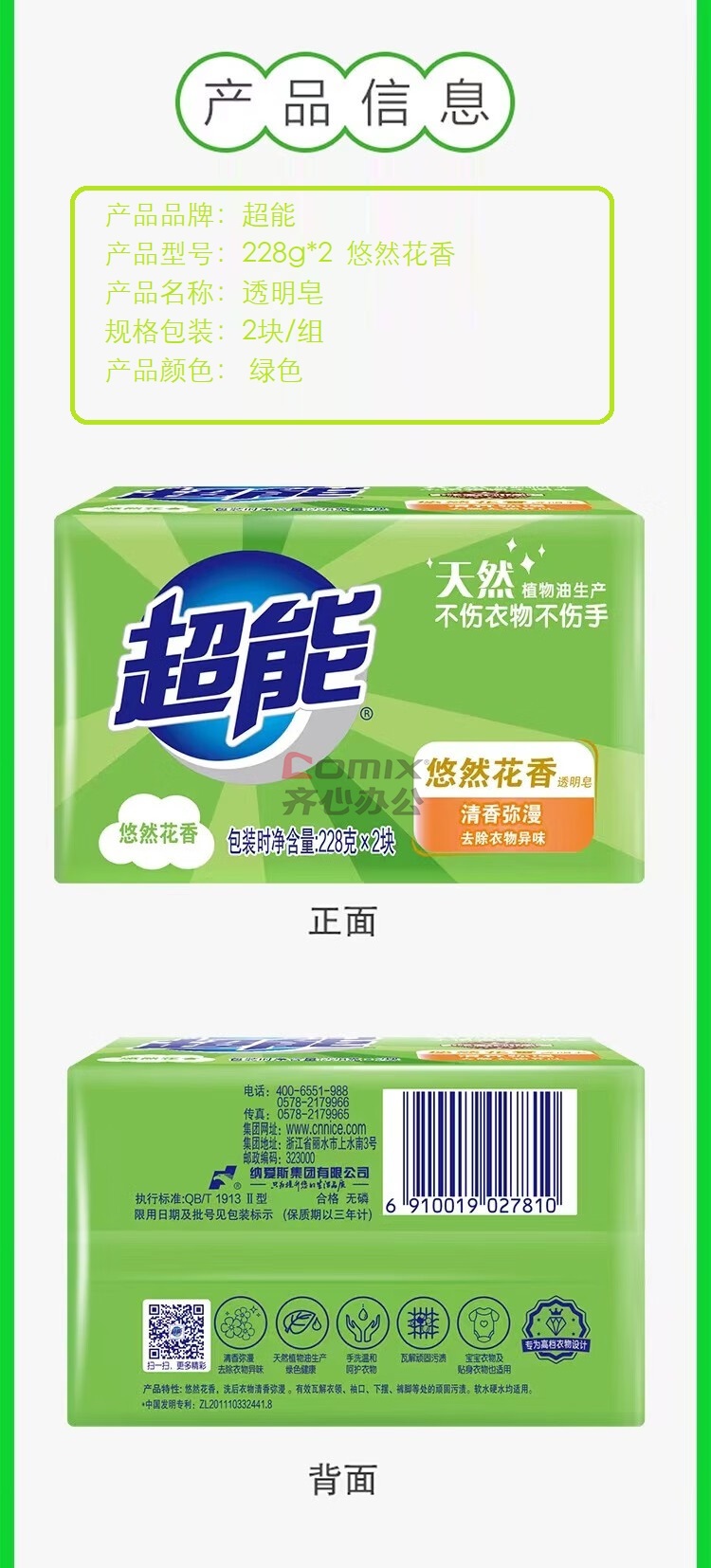 商品名称:超能 228g*2 悠然花香 透明皂 2.00 块/组 (计价单位:组) 绿色
