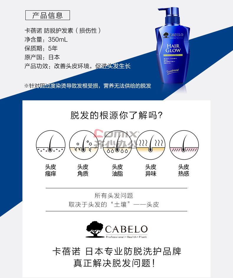商品名称:卡蓓诺 防脱育发护发素 损伤性脱发 350mL(单位:瓶)