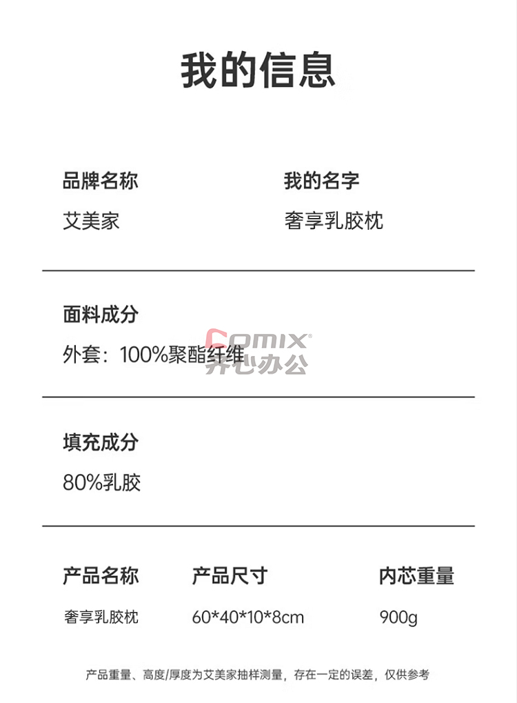 商品名称:艾美家 800g 七星奢享乳胶枕 40*60*10/8cm (单位:个)
