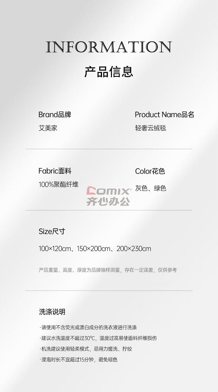 商品名称:艾美家 1kg 轻奢云绒毯 150*200cm 灰色 (位:条)