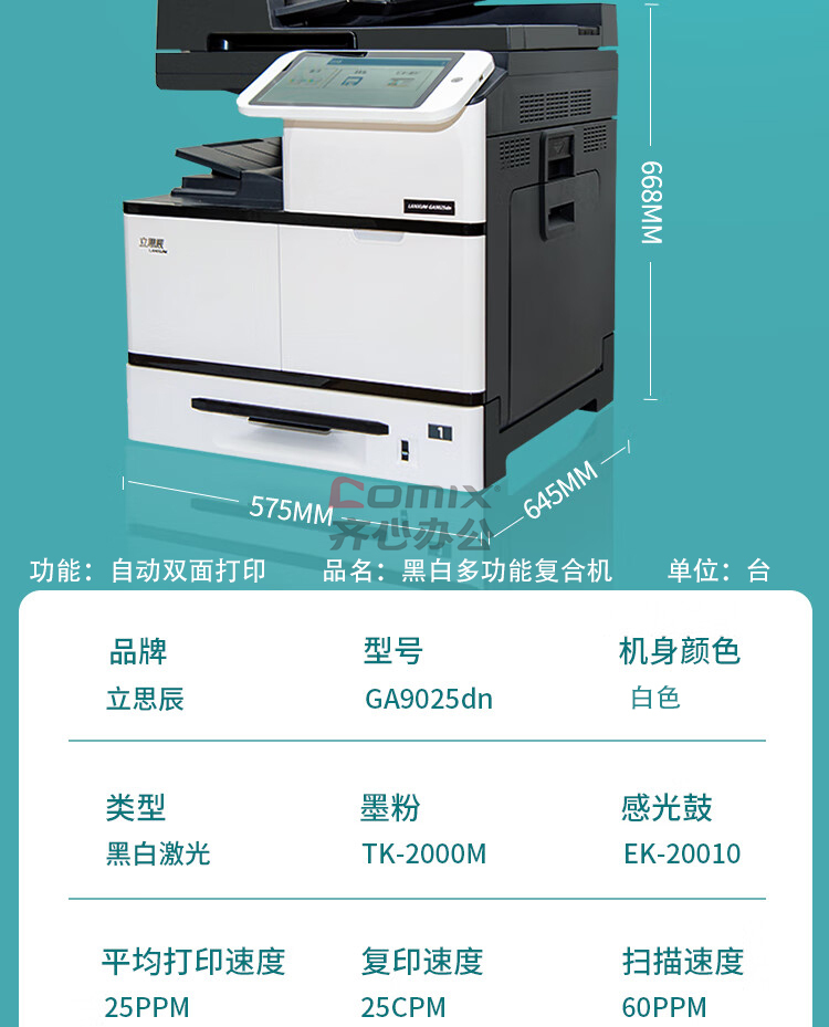 商品名称:立思辰(LANXUM) GA9025dn 自动双面打印 A3黑白多功能复合机 白色 单位:台
