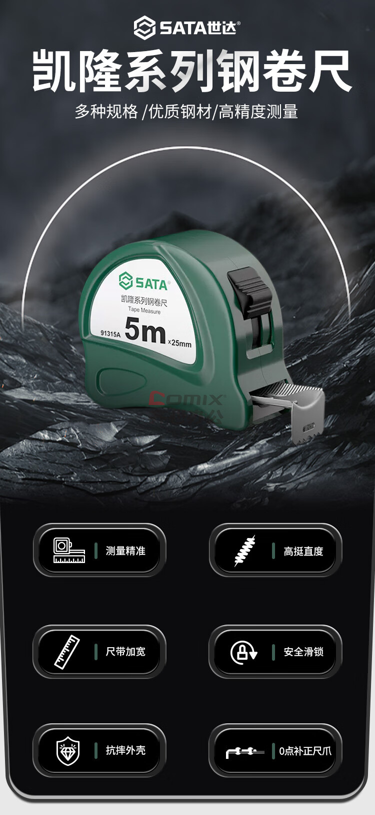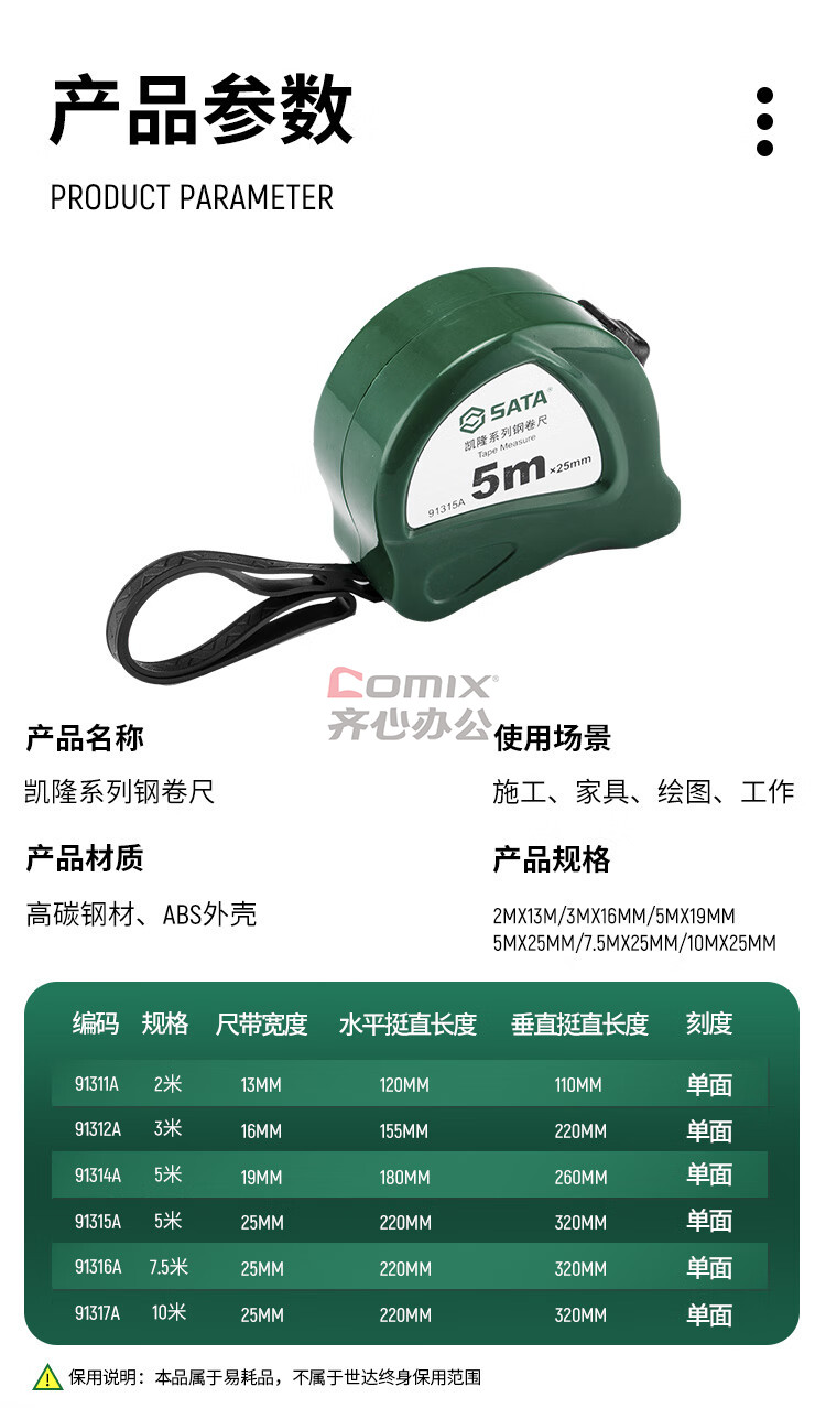 商品名称:世达(SATA)91314A 凯隆系列钢卷尺5Mx19MM 锁定功能木工尺 卷尺5m 单位:把