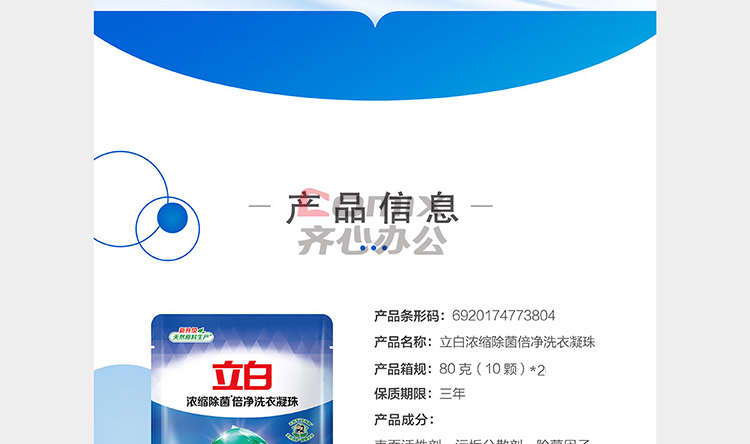 | 商品型号 | 浓缩除菌倍净洗衣凝珠80g(10颗装)*2 |