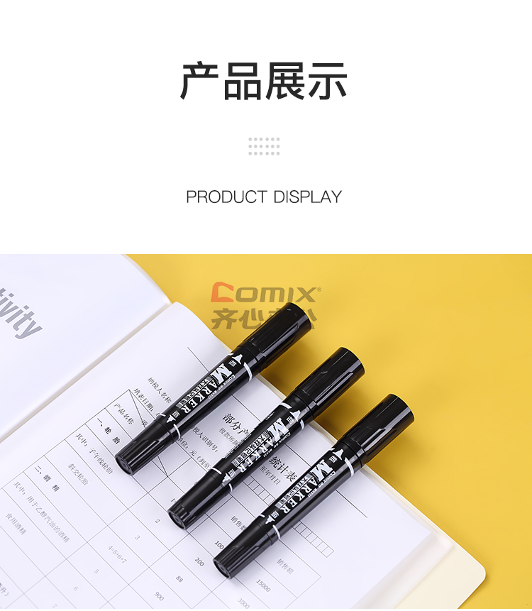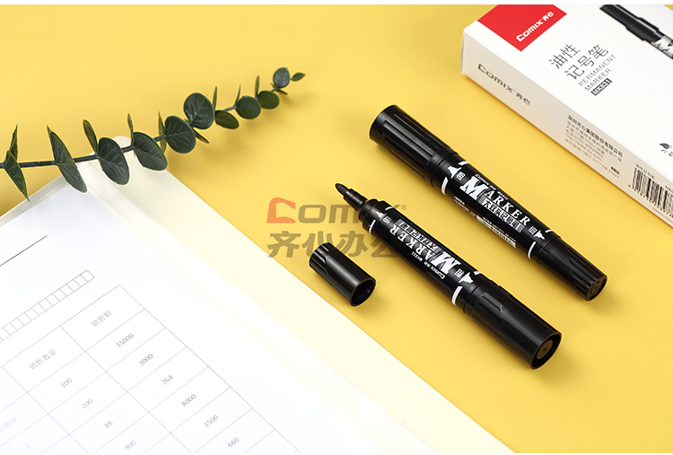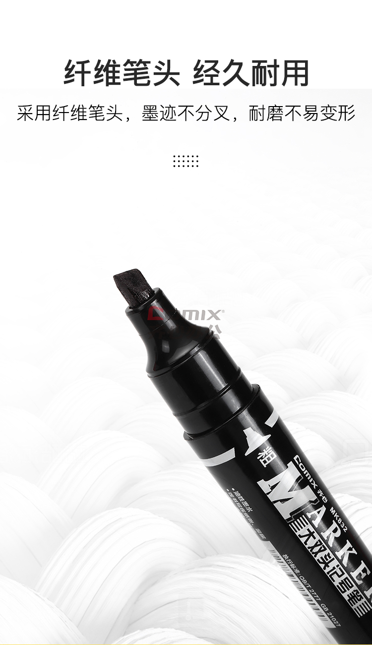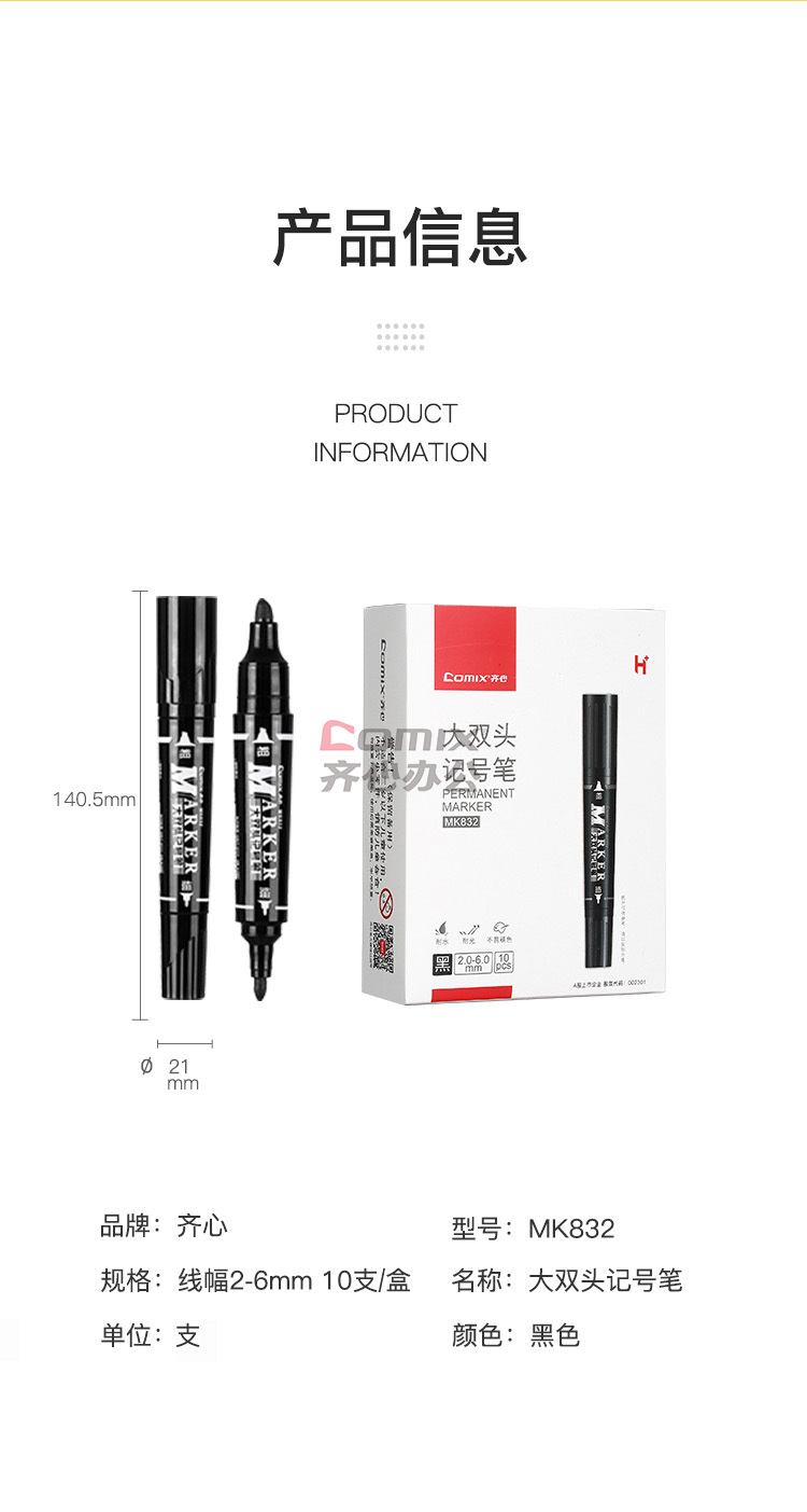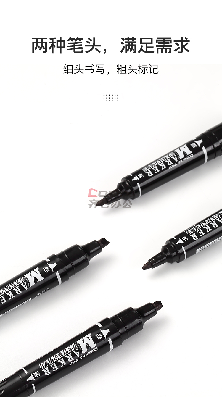 商品名称:齐心 MK832 大双头记号笔 线幅2-6mm 黑色 单位:支