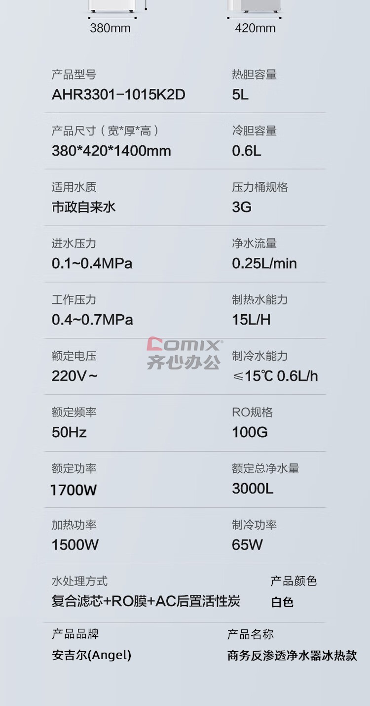 - 商品名称:安吉尔(Angel) AHR3301-1015K2D 商务反渗透净水器冰热款 (计价单位:台) 白色