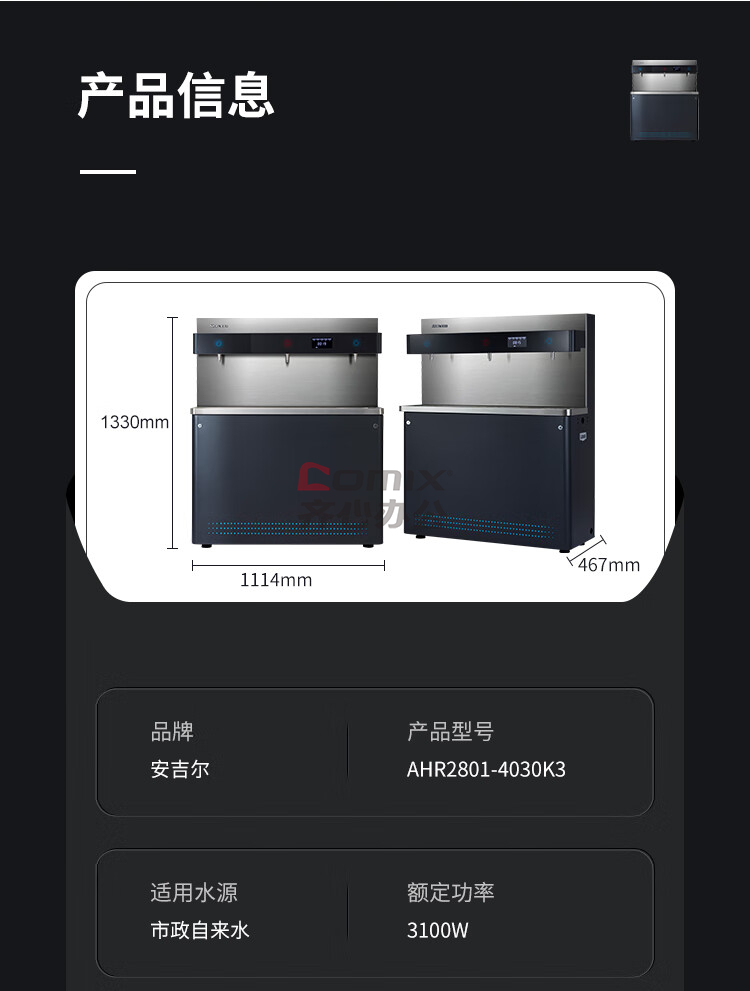 - 商品名称:安吉尔(Angel) AHR2801-4030K3 3龙头直饮水机平台 (计价单位:台) 黑蓝