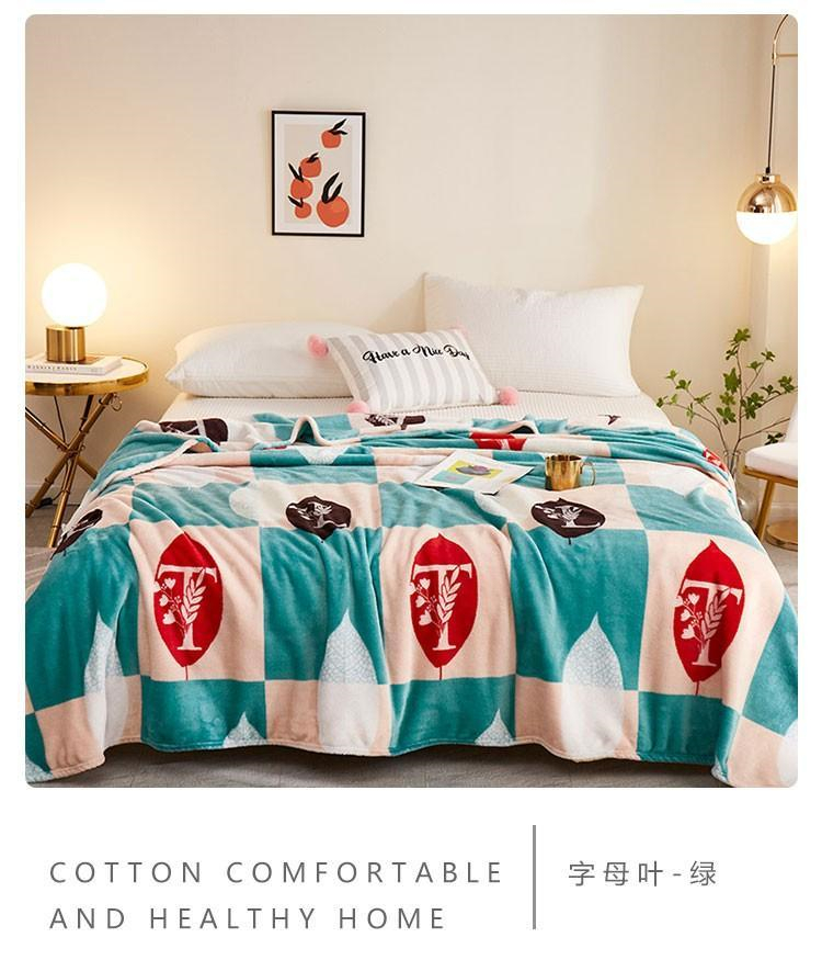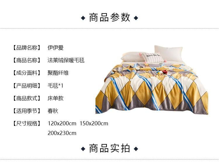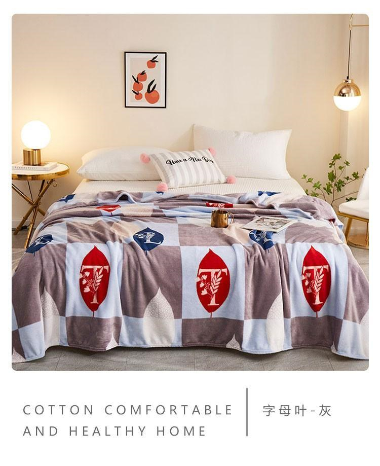 伊伊爱Y0TK02100089法莱绒珊瑚绒保暖毛毯200*230cm字母叶-灰(单位:条)