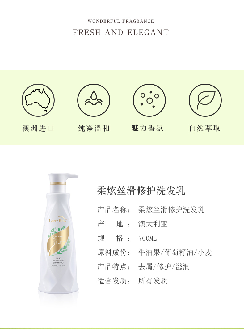 商品名称:绿色溪谷柔炫丝滑修护洗发乳700ml(单位:瓶)
