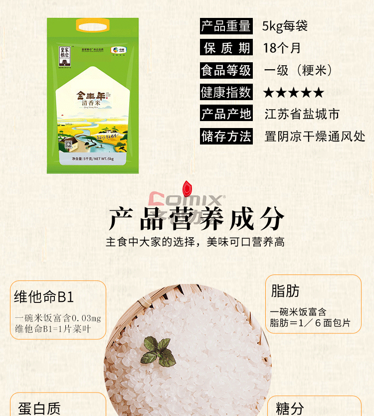 商品名称:福临门 5kg 中粮皇家粮仓金丰年清香米 (单位:袋)