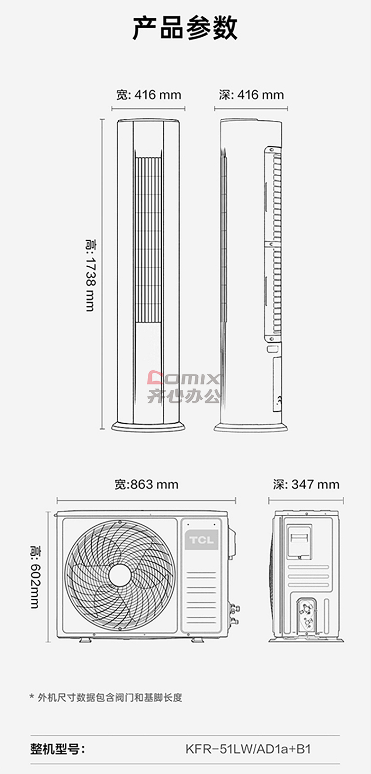 商品名称:TCL KFR-51LW/AD1a+B1 空调大2匹 立柜式空调柜机 单位:台