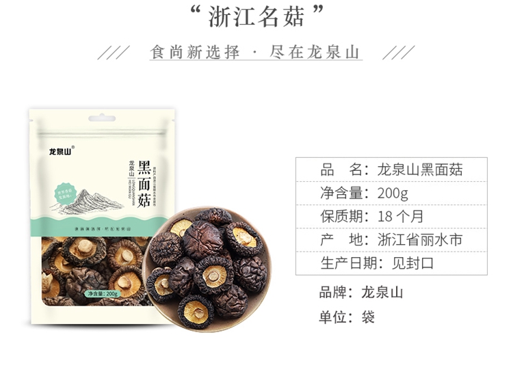 商品名称:龙泉山 黑面菇200g 单位:袋