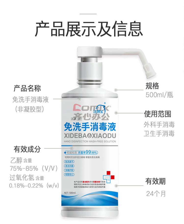 商品型号:免洗洗手液含75*酒精喷雾 500ml