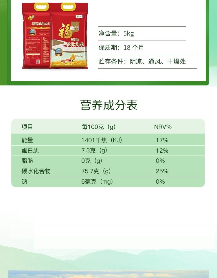 商品名称:福临门 寒地东北大米 5kg(单位:袋)真空包装