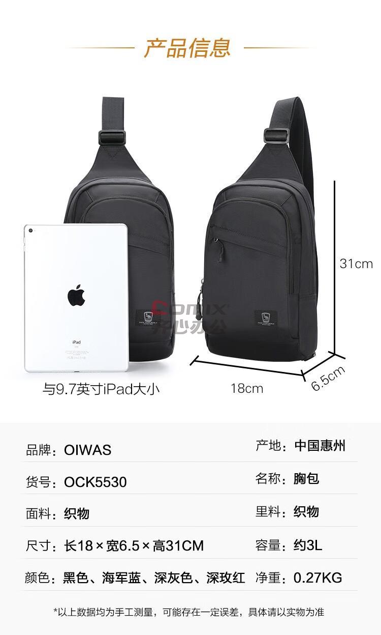 商品名称:爱华仕 胸包休闲挎包骑行包 5530 黑色 单位:个