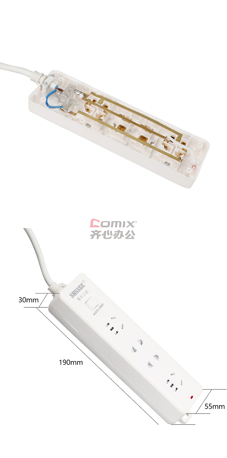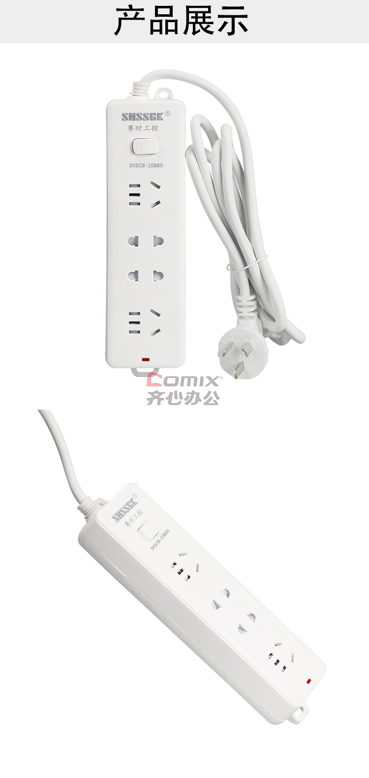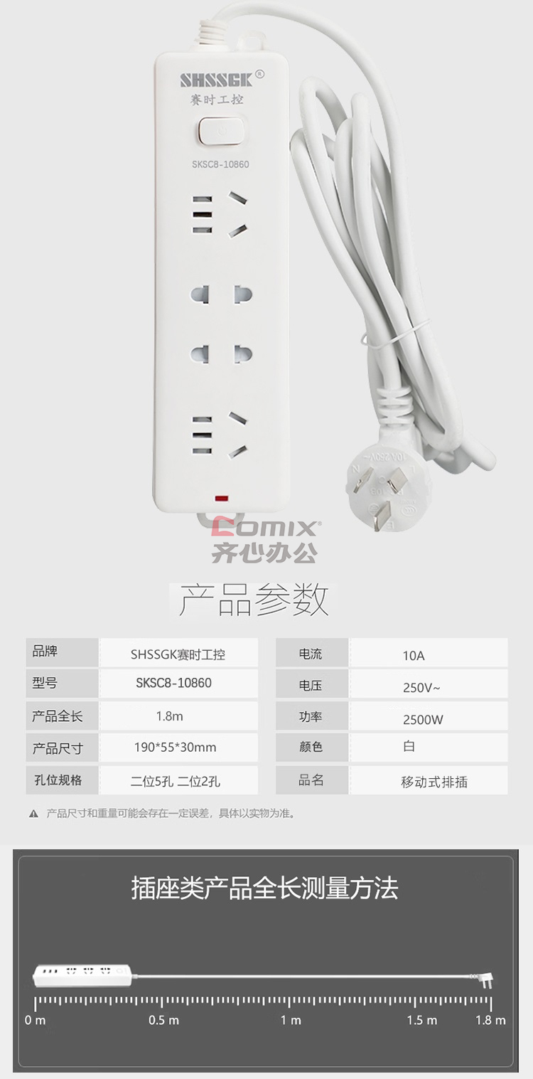 - 商品名称:赛时工控(SHSSGK) SKSC8-10860 二位5孔 二位2孔 10A 250V 2500W 190*55*30mm 移动式排插 (计价单位:个) 白