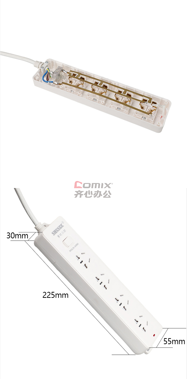 - 商品名称:赛时工控(SHSSGK) SKSC8-6860 四位5孔 10A 250V 2500W 225*55*30mm 移动式排插 (计价单位:个) 白