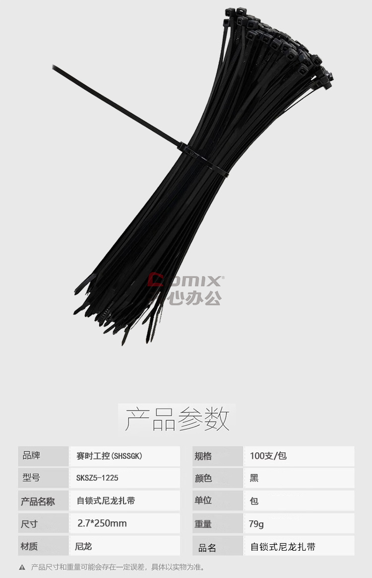- 商品名称:赛时工控(SHSSGK) SKSZ5-1225 2.7*250mm 100支 自锁式尼龙扎带 (计价单位:包) 黑