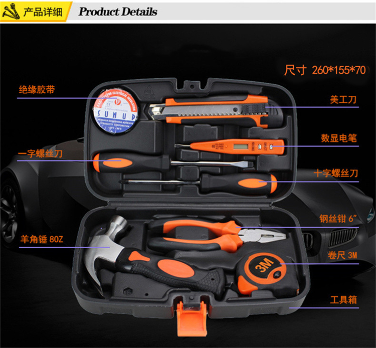 - 商品名称:A-TIMES GJ-8005-9 格林9件精品家用工具套装 材质:碳钢规格:260mm*155mm*70mm (单位:套)