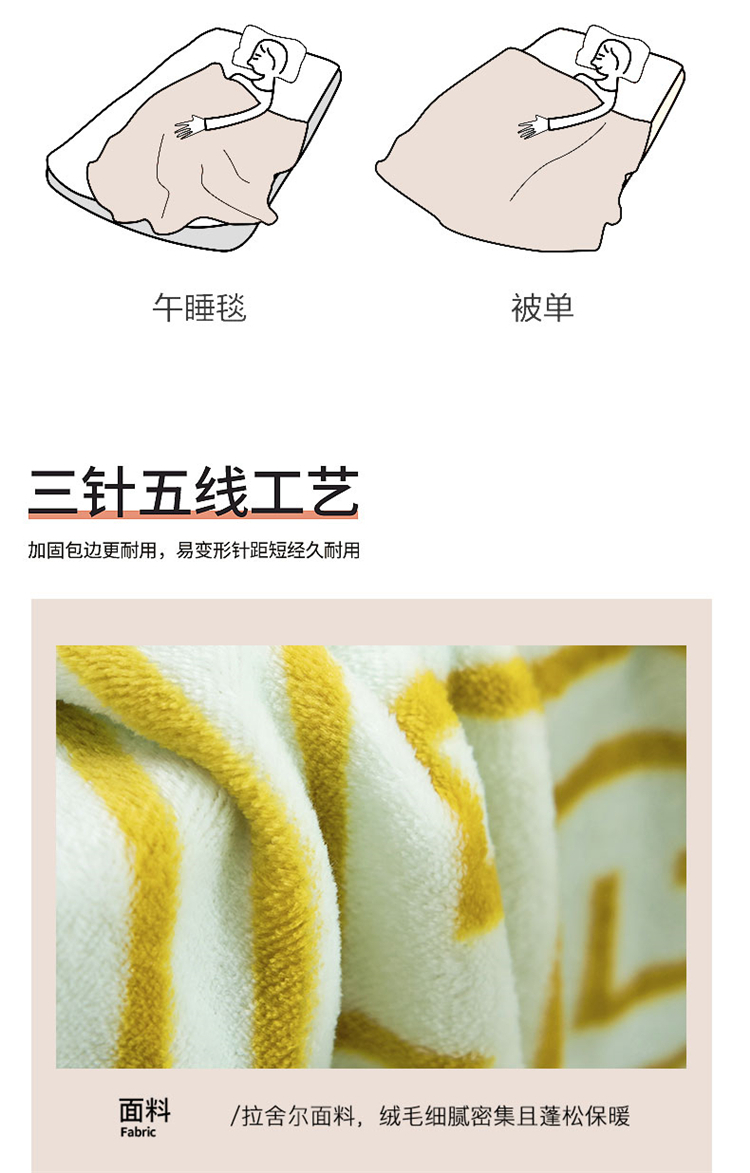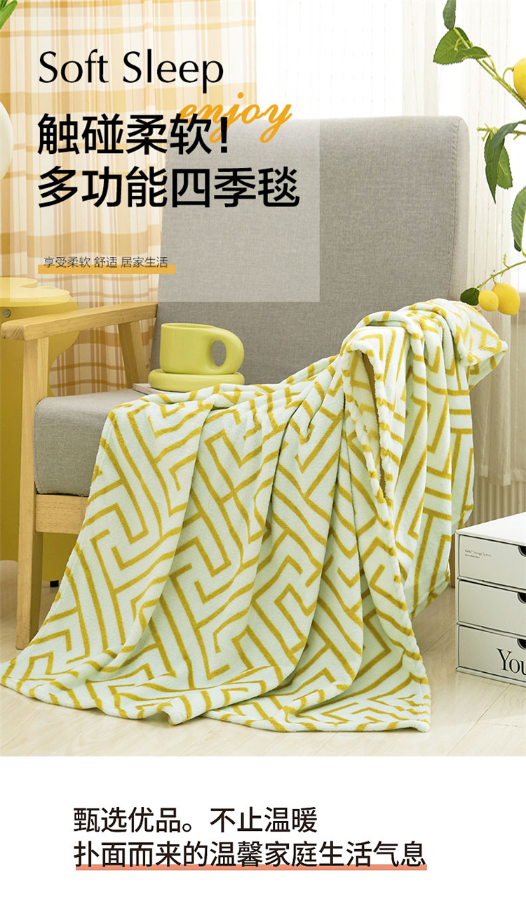 商品名称:A-TIMES JF-24100 艾菲尔毛毯 95*120cm 黄色 (单位:条)