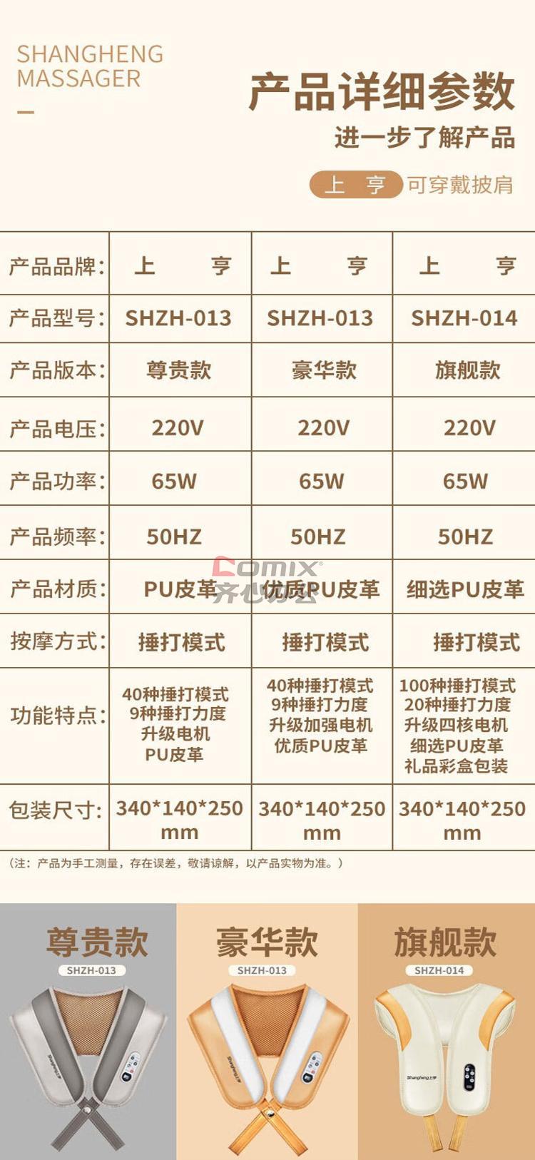 商品名称:上亨(shangheng) SHZH-013 两捶按摩披肩豪华款 金色 单位:个
