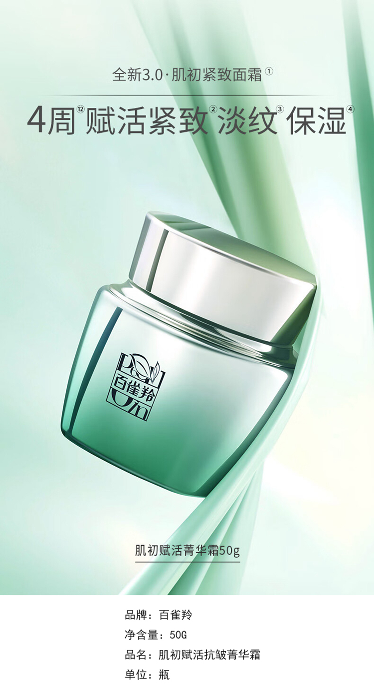 商品名称:百雀羚 50g 肌初赋活抗皱菁华霜 (单位:瓶)