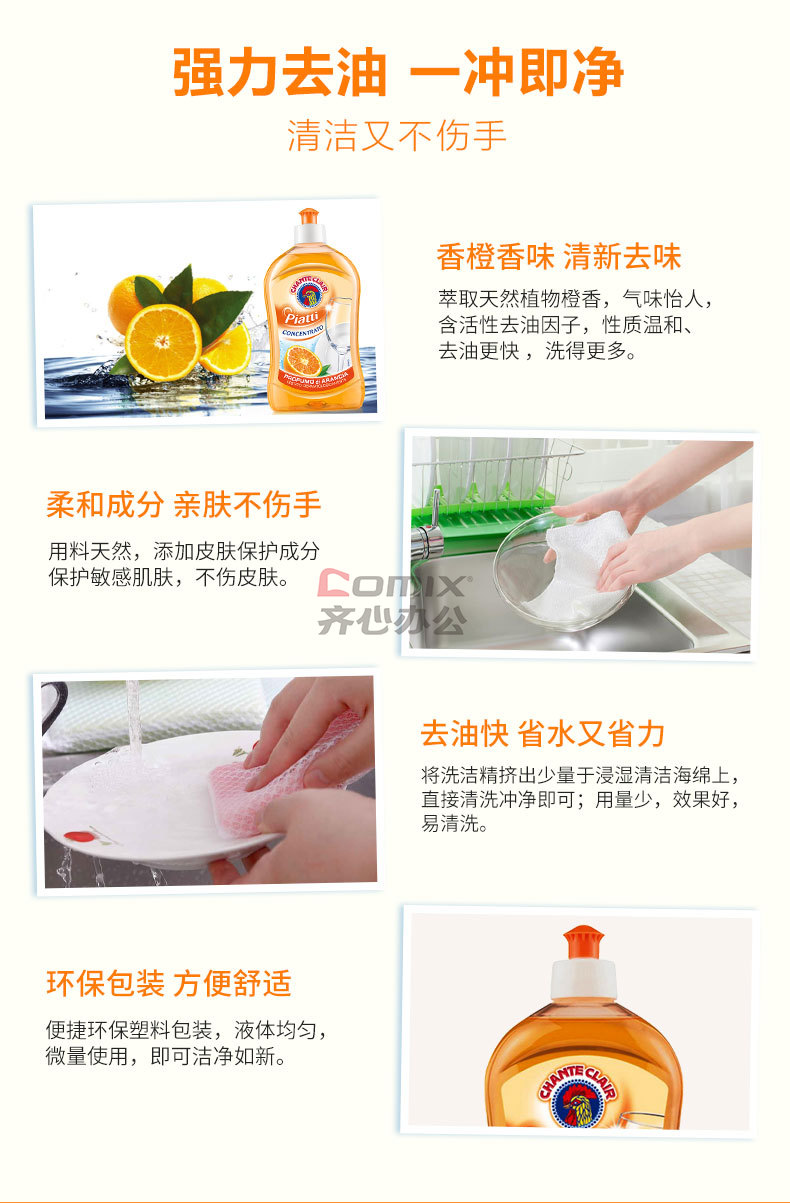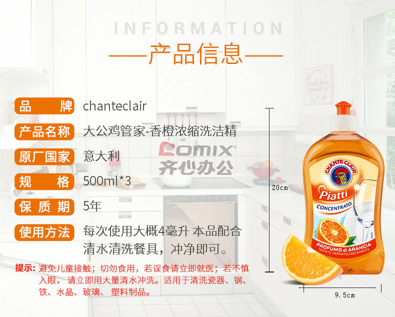 商品名称:大公鸡管家浓缩洗洁精(香橙)500ml*3瓶装