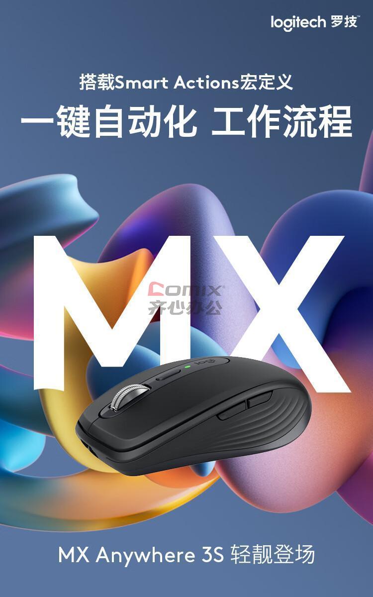罗技 静音鼠标 MX Anywhere 3S 无线蓝牙双模鼠标 便携快充长续航 石墨黑 单位:个