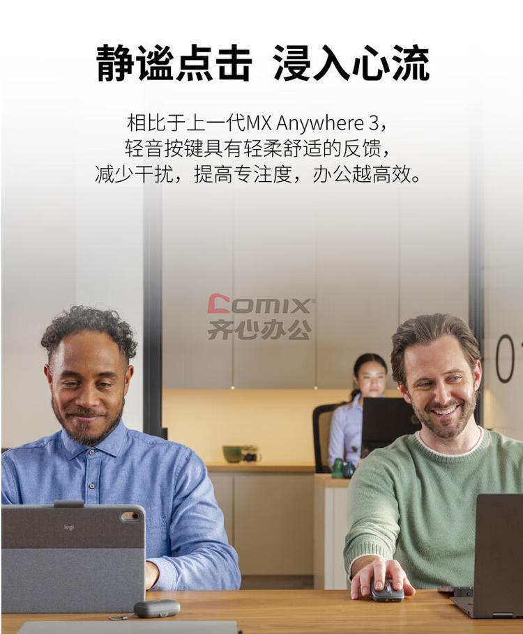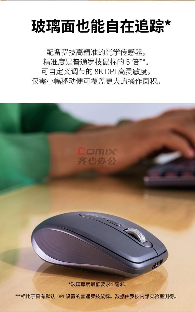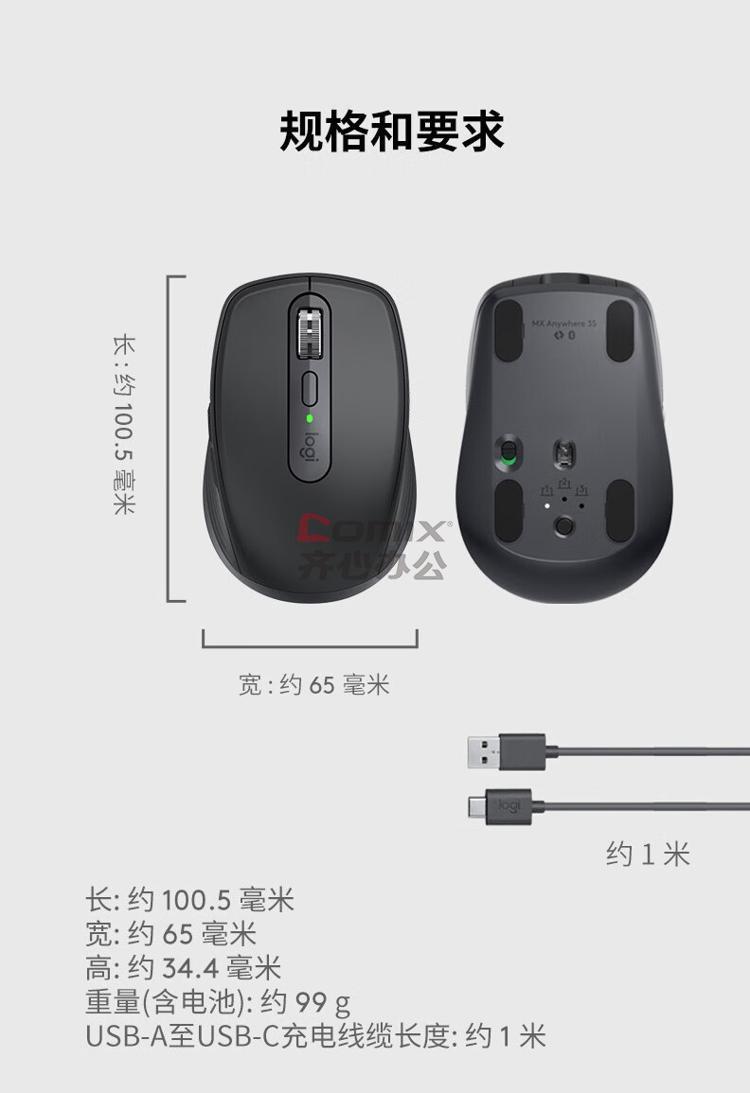 商品名称:罗技 静音鼠标 MX Anywhere 3S 无线蓝牙双模鼠标 便携快充长续航 石墨黑 单位:个