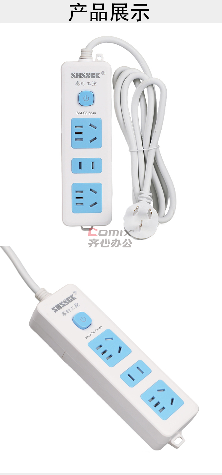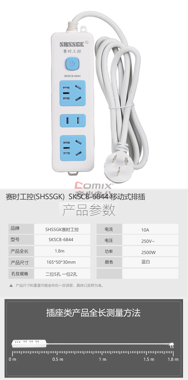 商品名称:赛时工控(SHSSGK) SKSC8-6844 二位5孔 一位2孔 移动式排插 (单位:个) 蓝白