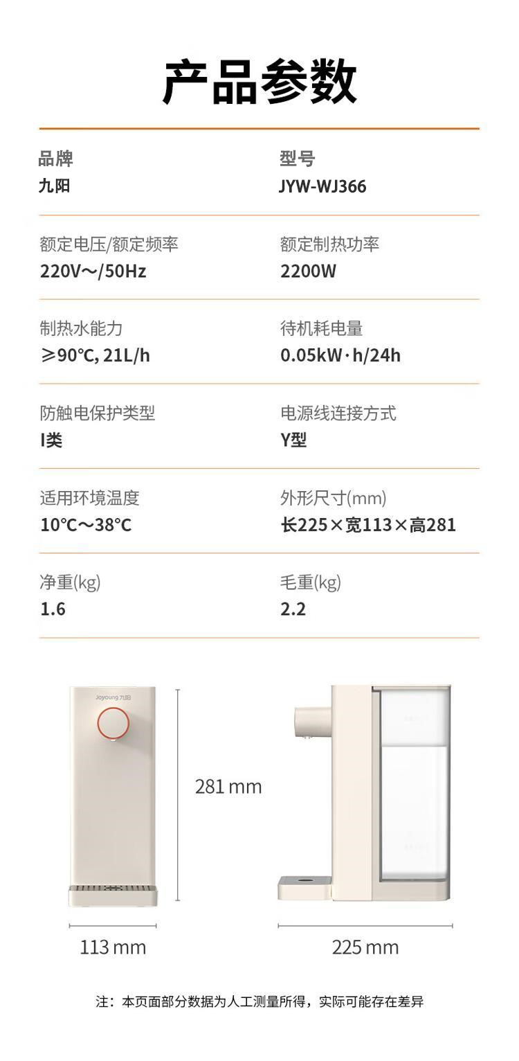 商品名称:九阳(Joyoung)JYW-WJ366 恒温电热水壶 2L (单位:台)