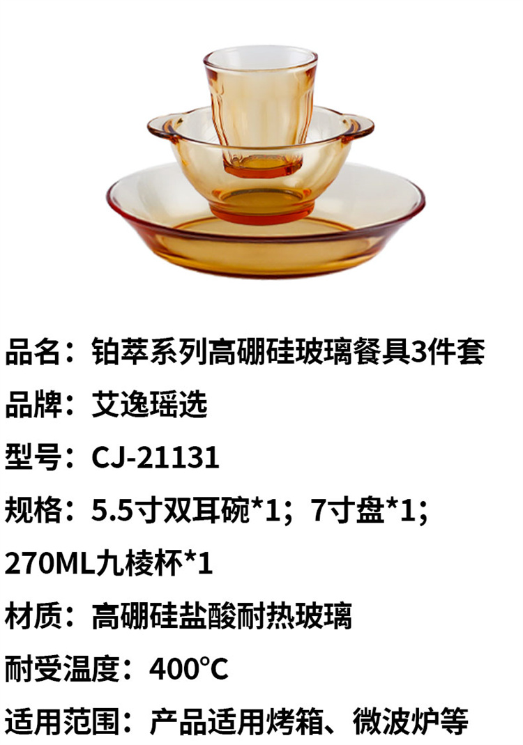 商品名称:艾逸瑶选 CJ-21131铂萃系列高硼硅玻璃餐具3件套(单位:套)