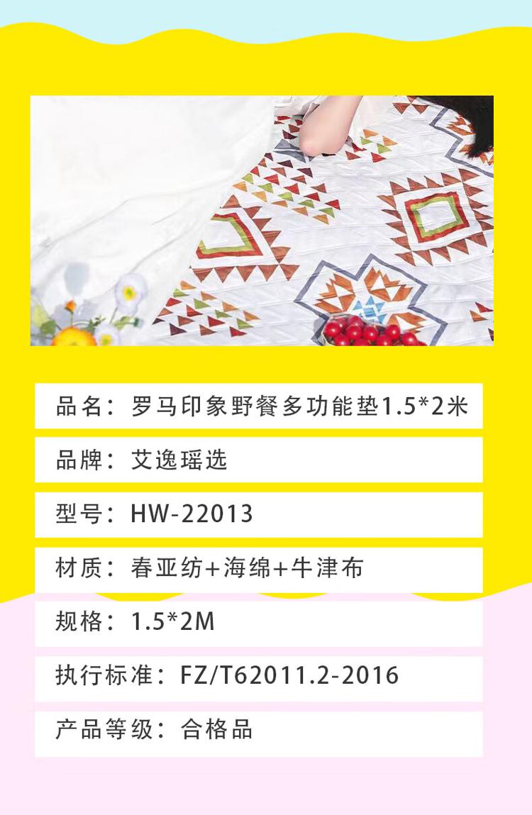 商品名称:艾逸瑶选 HW-22013 野餐垫 1.5*2米 单位:个